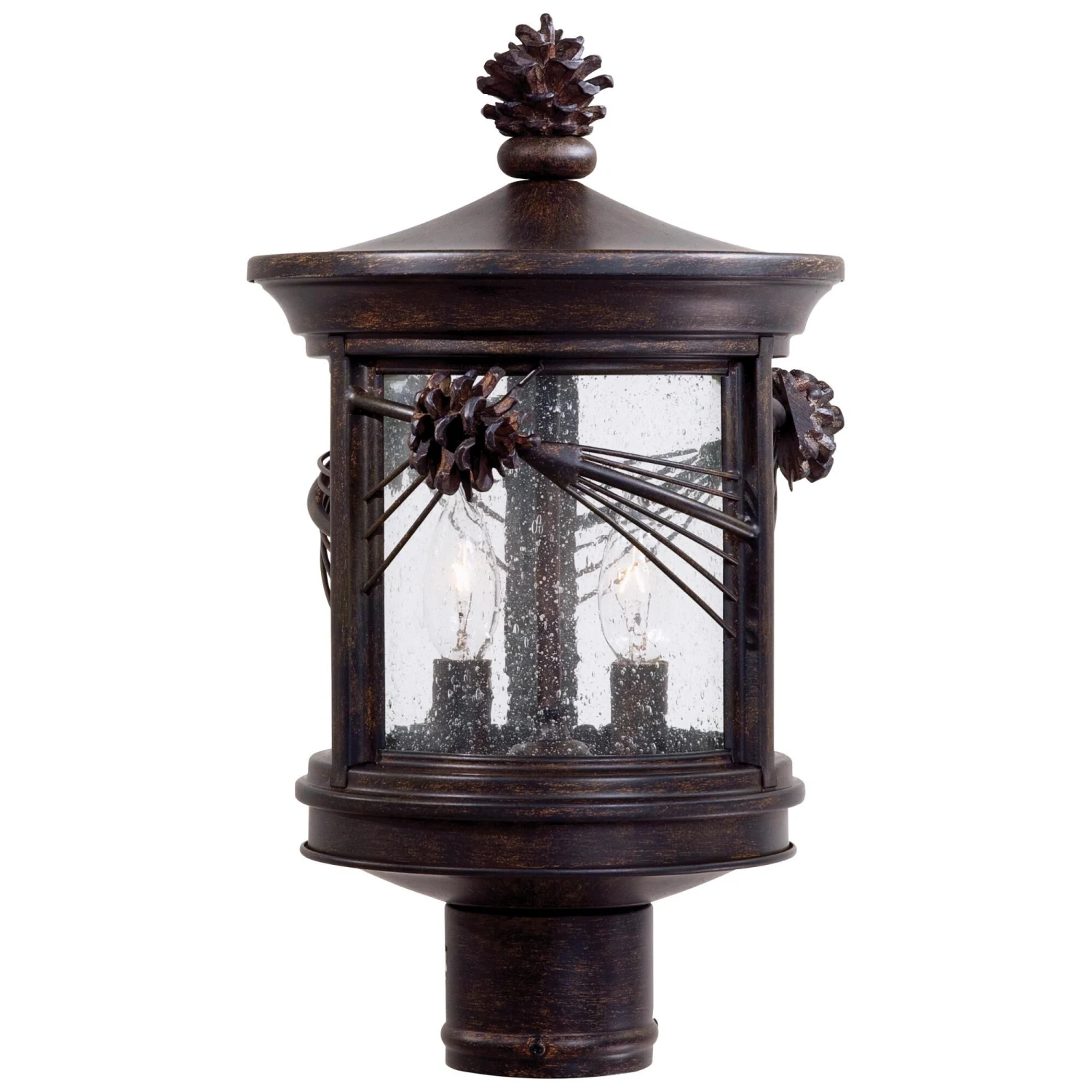 Welcome your guest in a rustic style with this charming nature inspired collection. Sturdy construction combined with a durable and distinctive finish assure a lantern that will light your way for years to come. This Post Lantern has a 3 inch fitter that