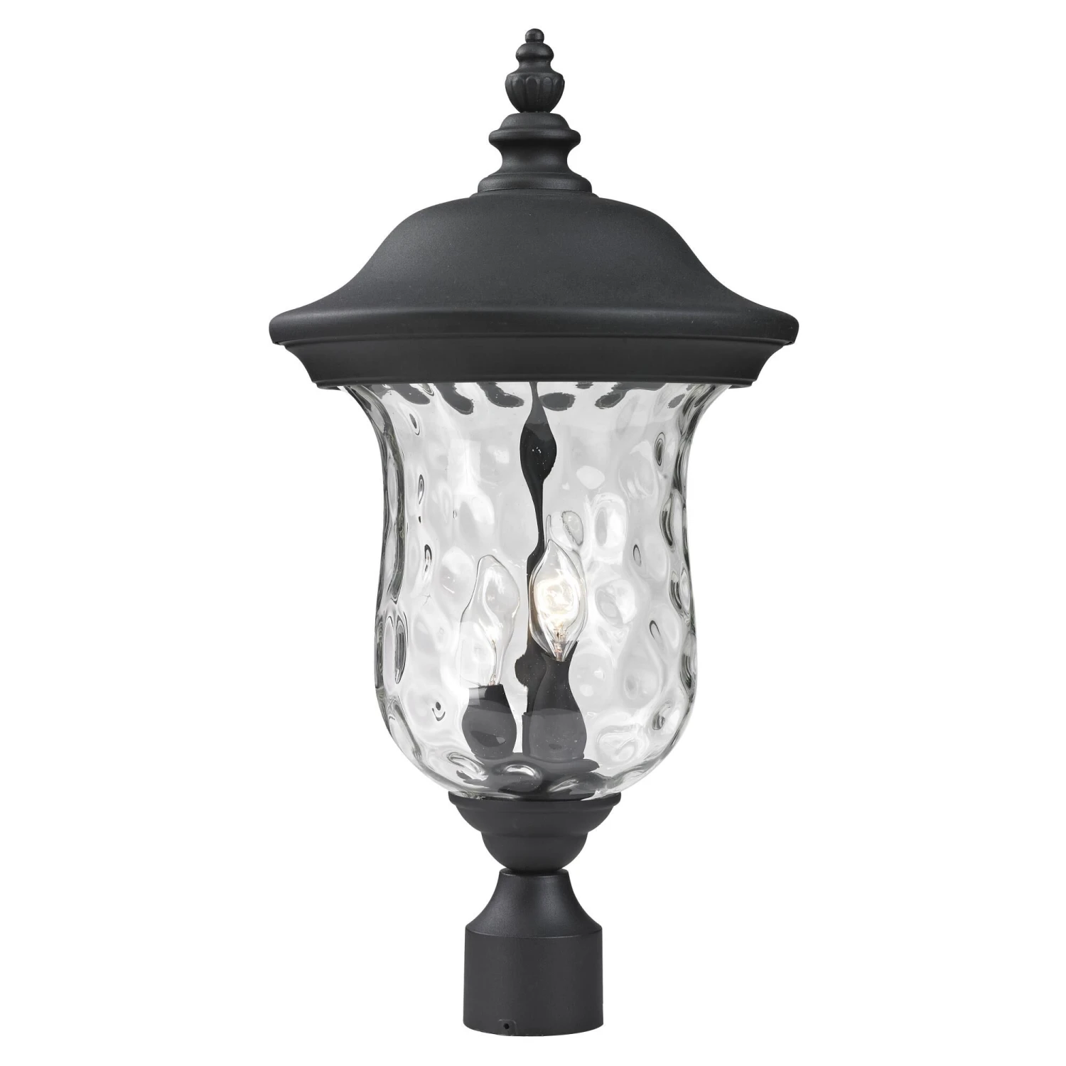 Traditional charm emanates from this medium outdoor post head fixture, which pairs clear water glass with black hardware for a timeless look.