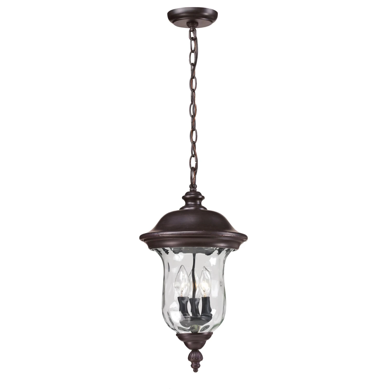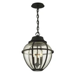 Traditional charm emanates from this large outdoor chain hung fixture, which pairs clear water glass with black hardware for a timeless look.