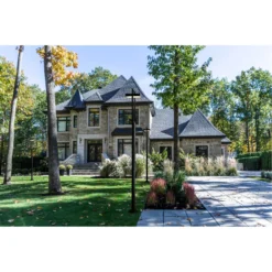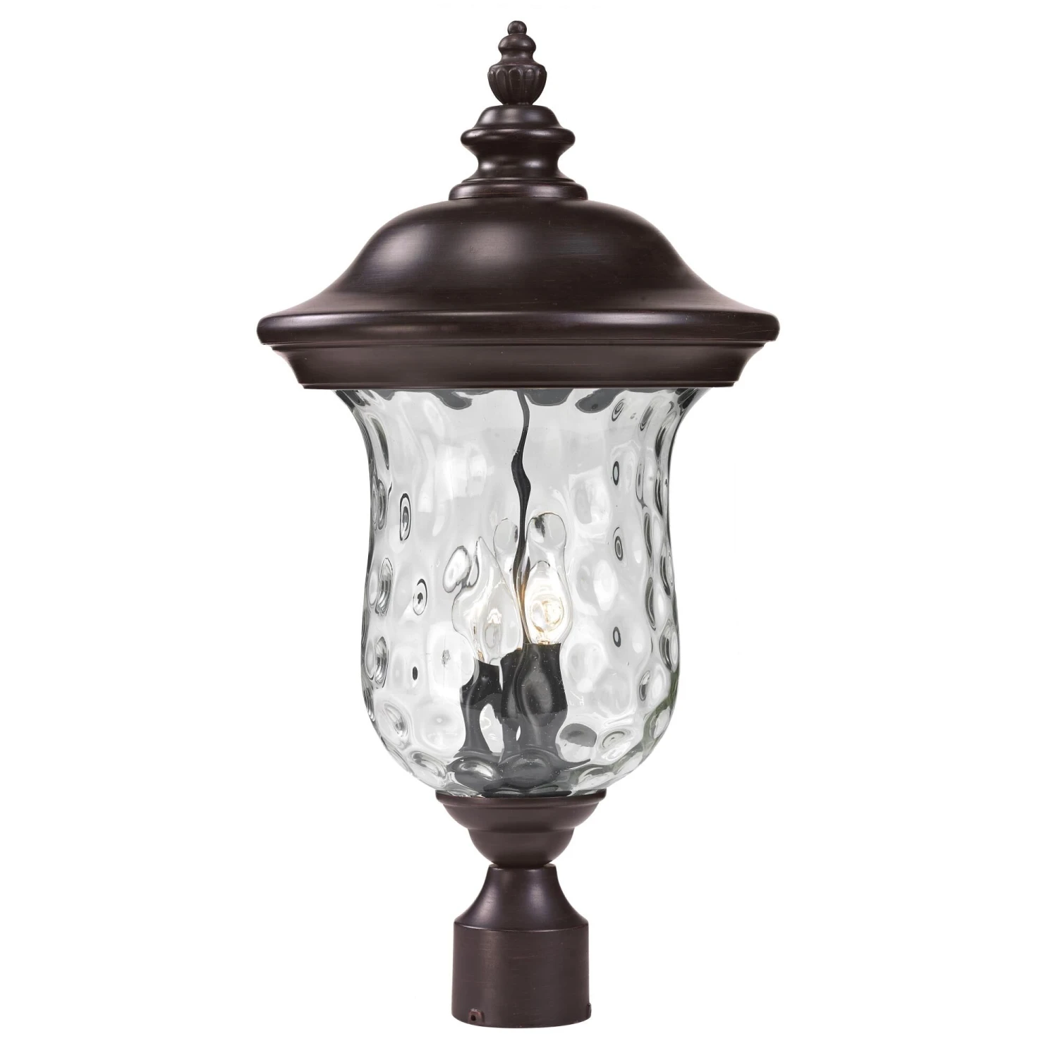 Traditional charm emanates from this large outdoor post head fixture, which pairs clear water glass with black hardware for a timeless look.