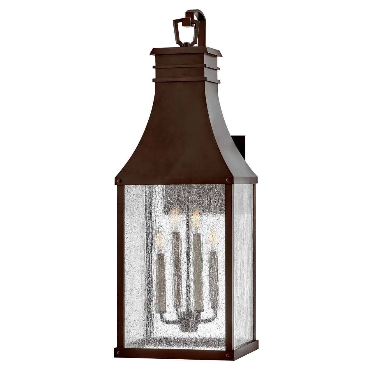 Taking inspiration from an English lantern, Beacon Hill achieves a timeless aesthetic. Part of the Heritage collection, this traditional style features a striking Blackened Copper or Museum Black aluminum frame. The heavily seeded glass pays homage to its Old-World charm.
