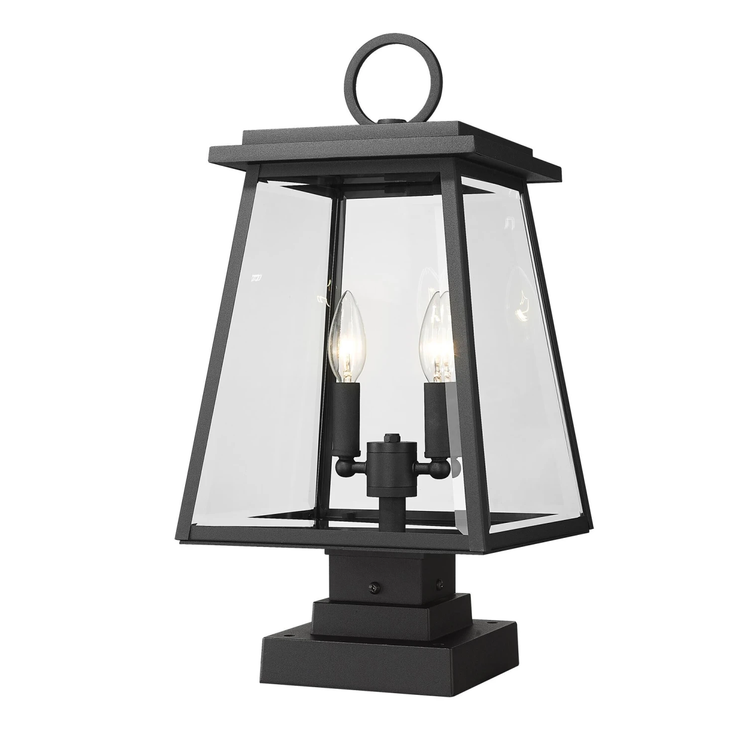 Defying convention, the Broughton series of outdoor lanterns is a well orchestrated craftsmen design with transitional elements. Beveled glass and a decorative loop on the lantern tops are crowning touches, along with stepped design on the top for added distinction. A suite of exterior lighting is available, from pier- and post-mount, to chain hung to wall mounts.