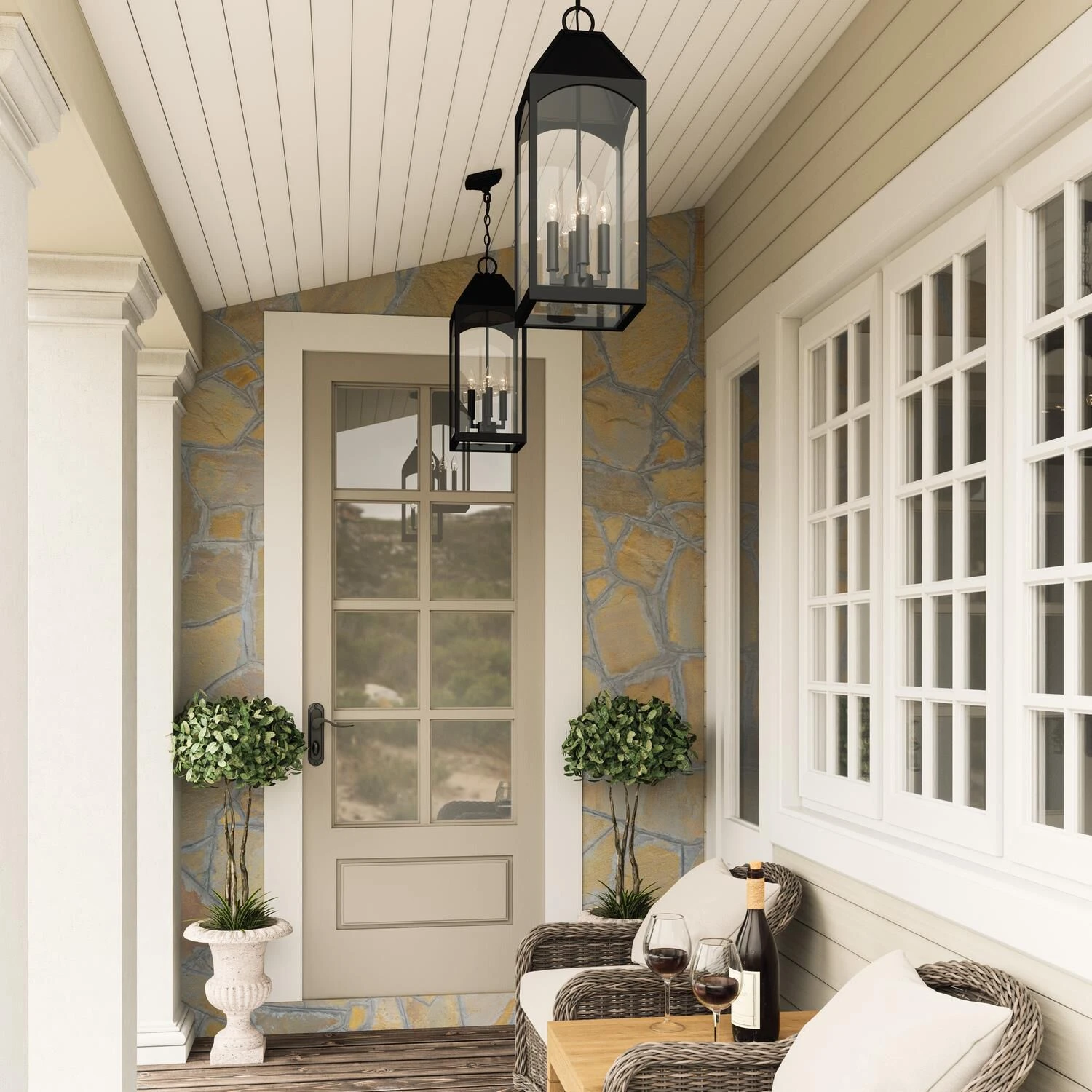 Enhance your exterior with the Burton Hanging Lantern. The arched panes and tented top in a Black finish beautifully blend classic style with modern appeal. Part of ourRain or Shine Collection and backed by our five-year warranty.