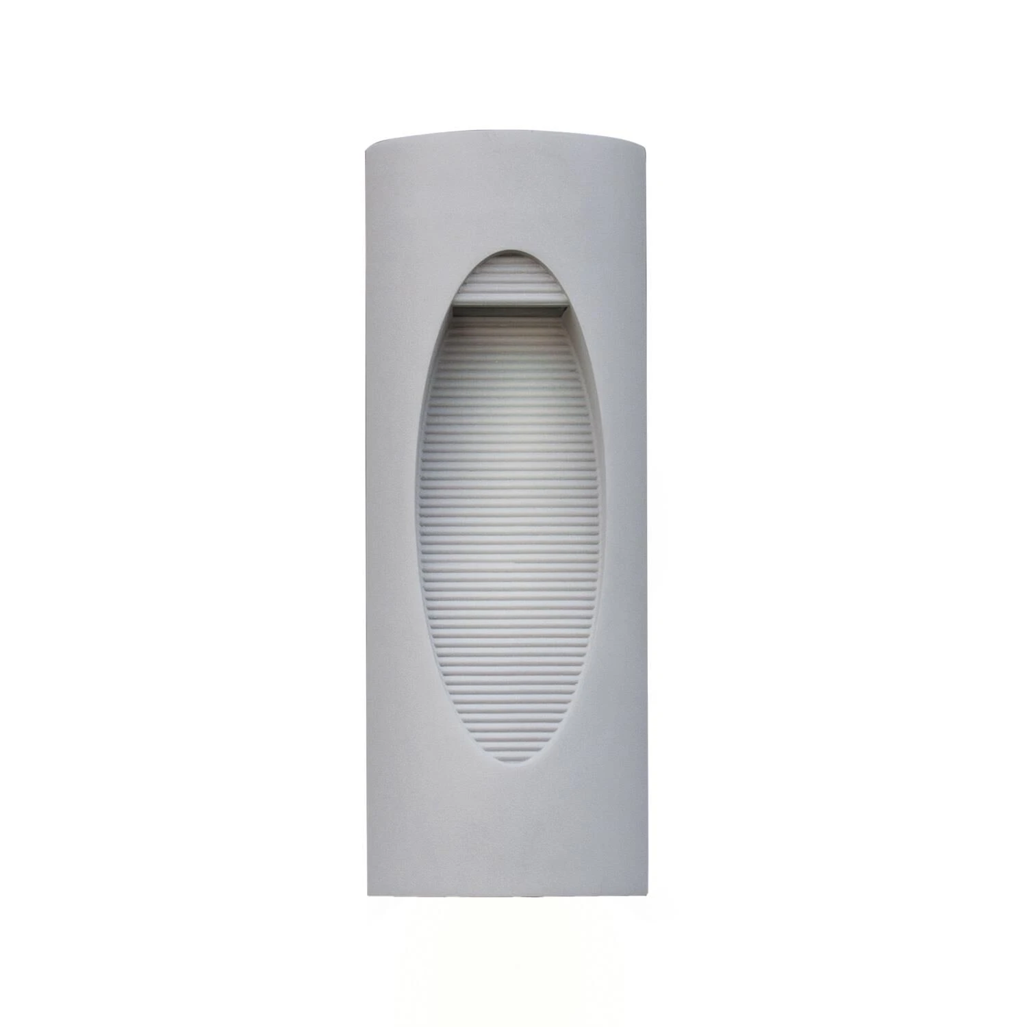A wall light for exterior spaces. Enhance the landscape architecture of your space with these illuminating towers. Lights project down from both the bottom and center of the tower. Available in two sizes and in two colors.