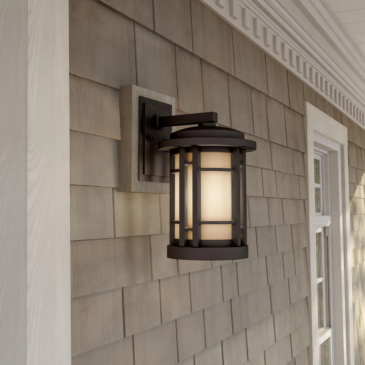 A distinctive accessory for the exterior of the home, the style of the Barrister collection is todays interpretation of past Mission styling and features. Energy efficient LED technology. Finish is Burnished Bronze with White Opal glass.