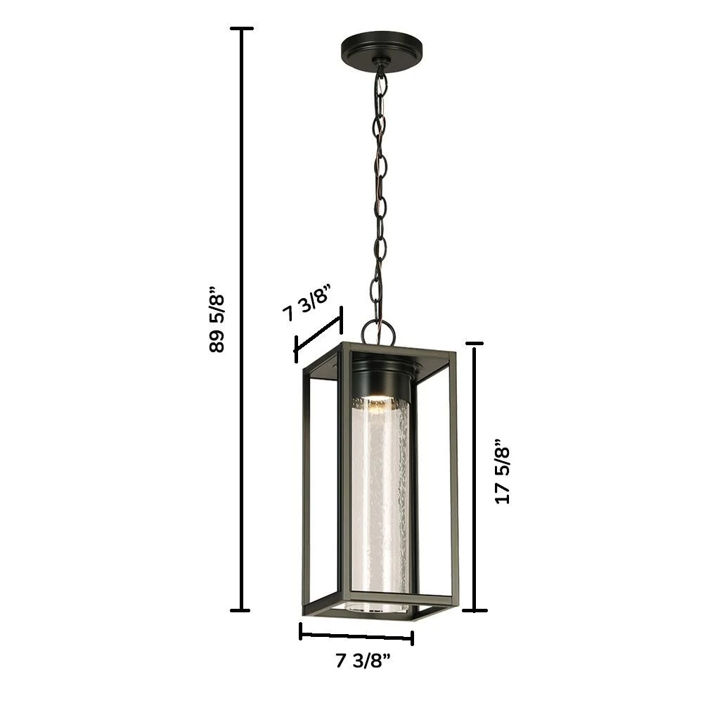 The Walker Hill LED outdoor pendant by Eglo will give your home that new refreshing look you’ve been looking for. A clear seedy glass cylinder suspended within a matte black architectural frame. Beautifully illuminated with LED ambient lighting for a magical appearance of crystallized effervescence