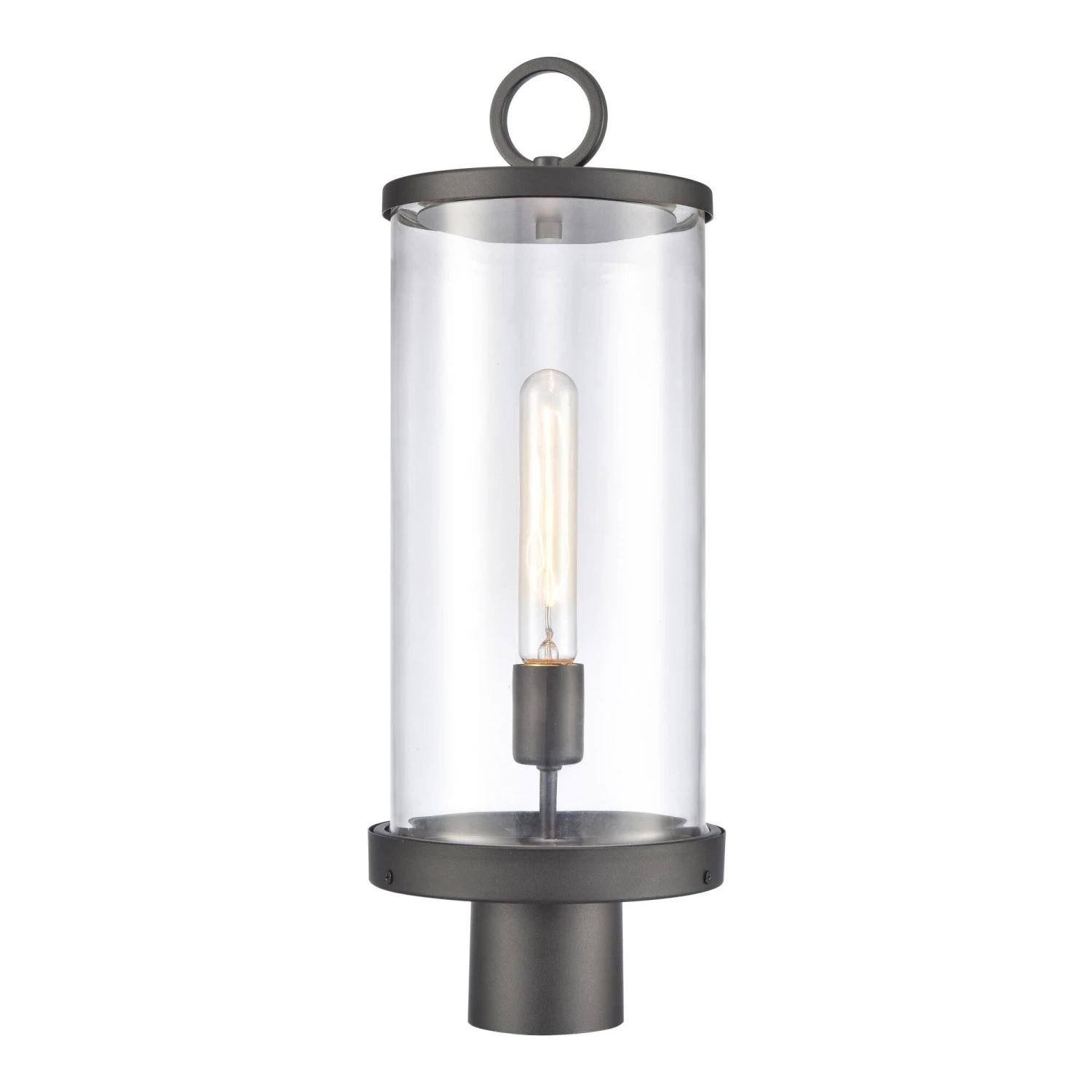 The Hopkins collection of outdoor lighting includes sconces, hanging lights and post lights. The streamlined cylindrical lantern shape features an aluminum cage, clear glass and simple modern “hook” design at the top and bottom.