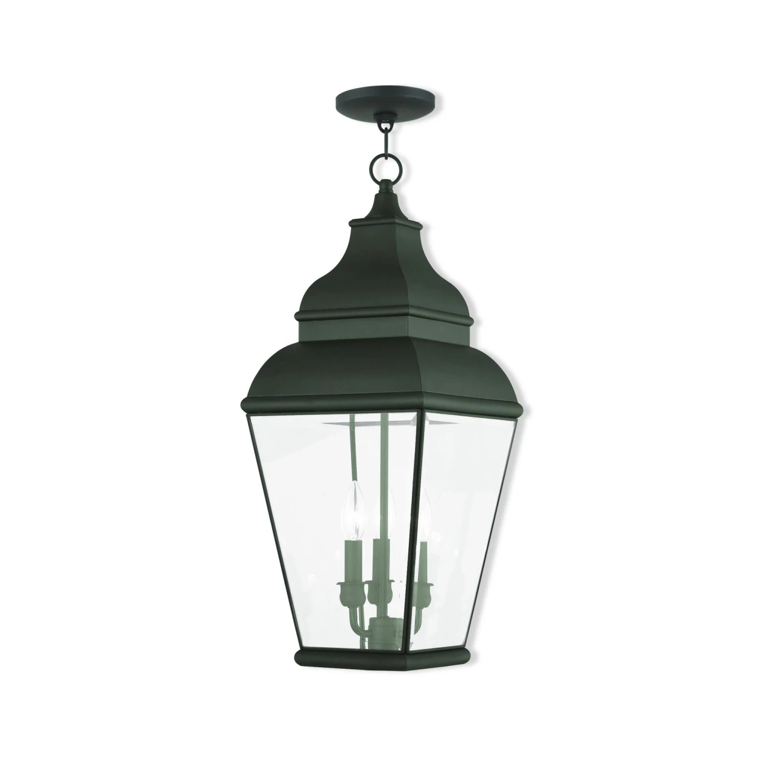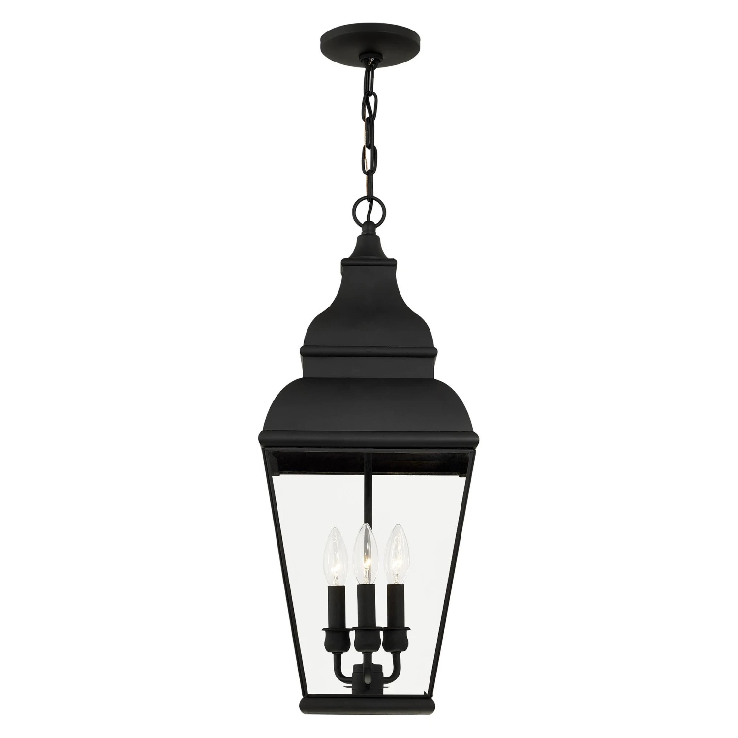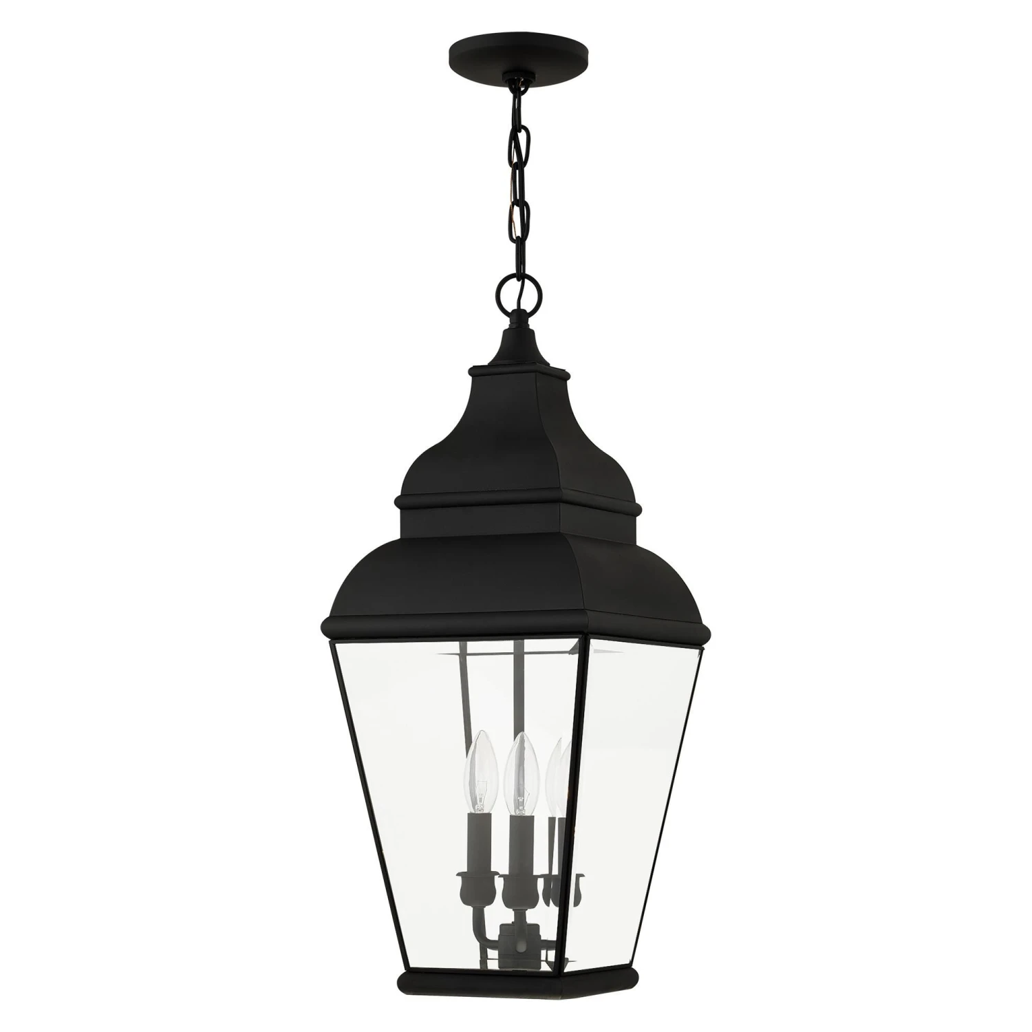 Finished in black with clear beveled glass, this outdoor wall lantern offers plenty of stylish illumination for your home’s exterior.