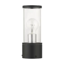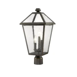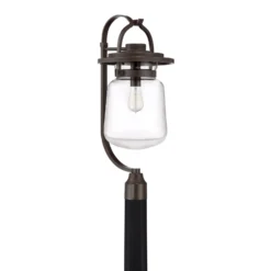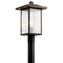 The 1-light outdoor post mount from the Capanna(TM) collection gives the classic lantern light a linear update. A textured black finish and squared edges, including a capstone finial, combine with artful waterfall glass to create a style that works on homes with modern, transitional or arts & crafts architecture.