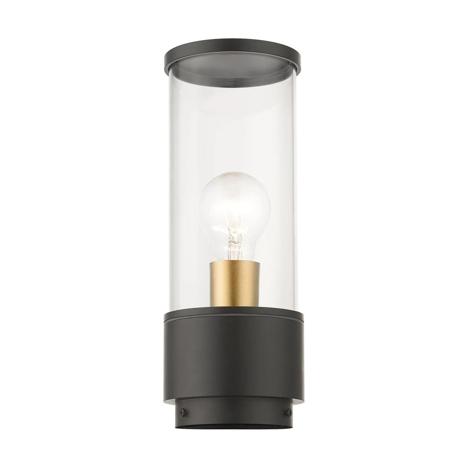 Add a dash of character and radiance to the exterior of your home with the Atlantic post top lantern. This single-light fixture features a clear glass cylinder closed top shade, set off with a bronze or black finish with antique gold finish accents. This fixture adds charm and contemporary aesthetics to your home.
