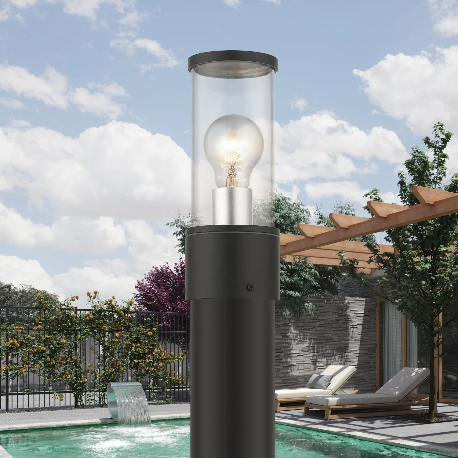 Add a dash of character and radiance to the exterior of your home with the Atlantic post top lantern. This single-light fixture features a clear glass cylinder closed top shade, set off with a textured black finish with antique silver finish accents. This fixture adds charm and contemporary aesthetics to your home.