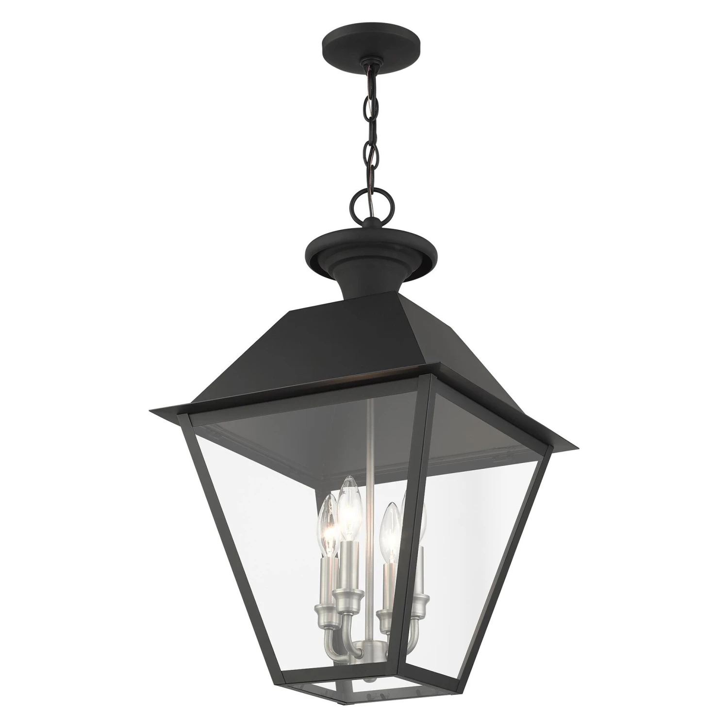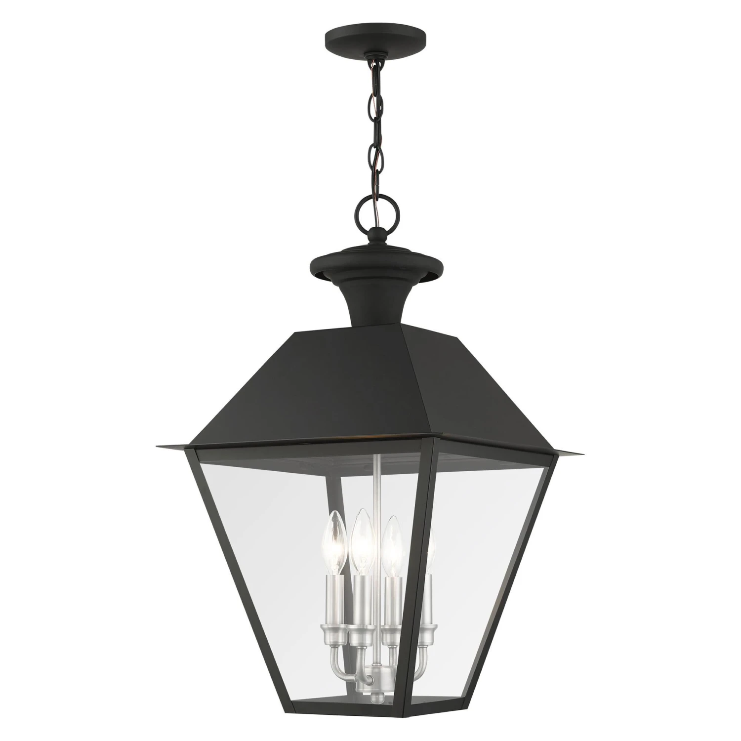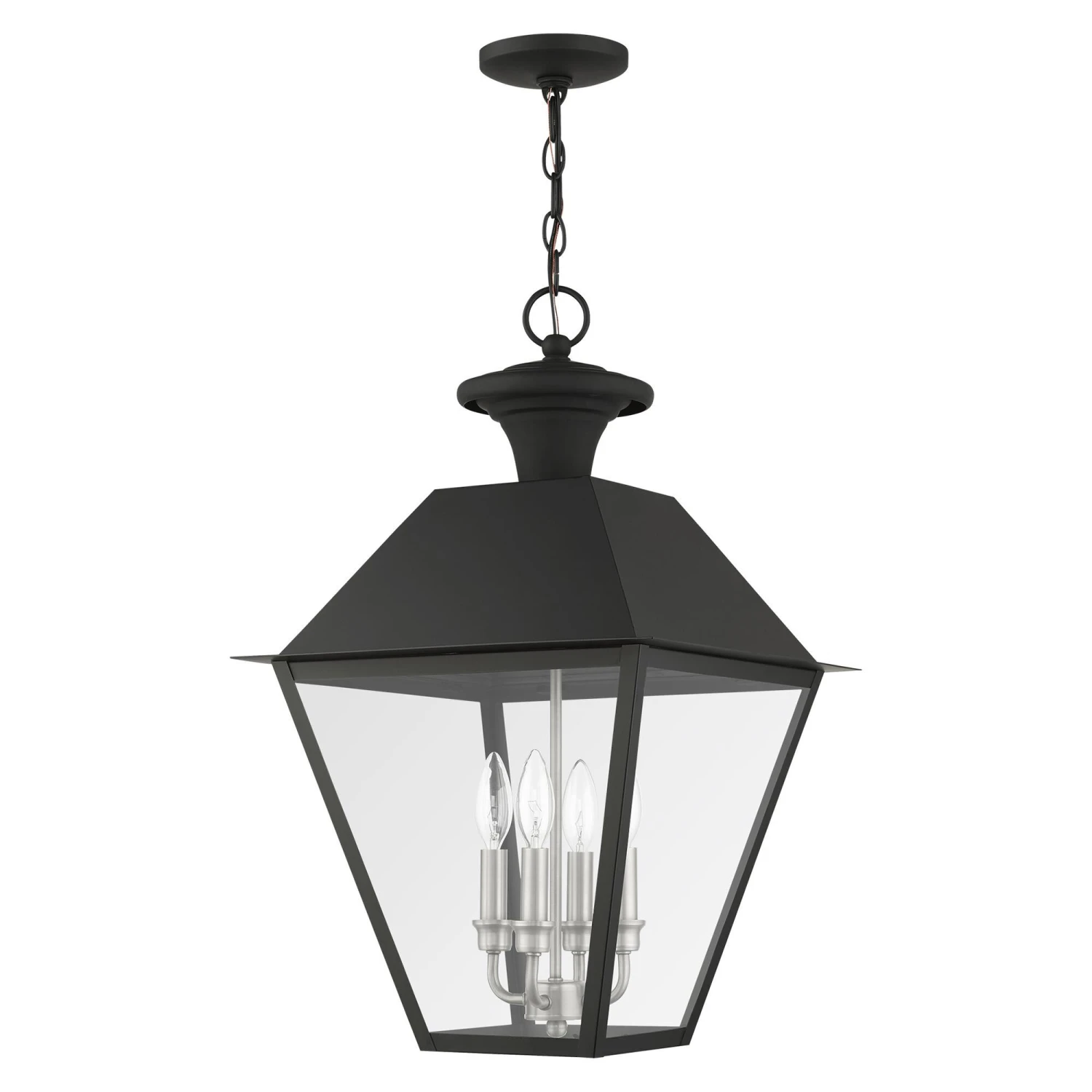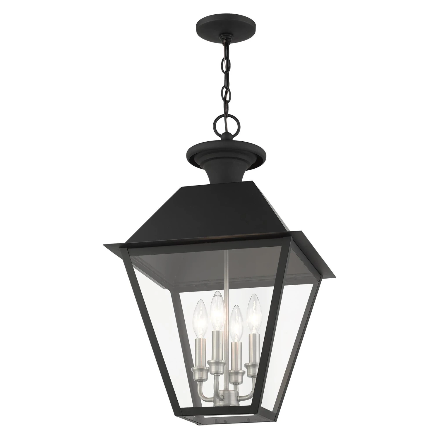 With its appealing black finish and clear glass, the stunning Mansfield collection will make an elegant addition to any outdoor space. Formed from solid brass & traditionally inspired, this four-light outdoor extra-large pendant is perfect for your entry way. Combining superb craftsmanship and affordable price, this fixture is sure to be a timeless addition to your home.