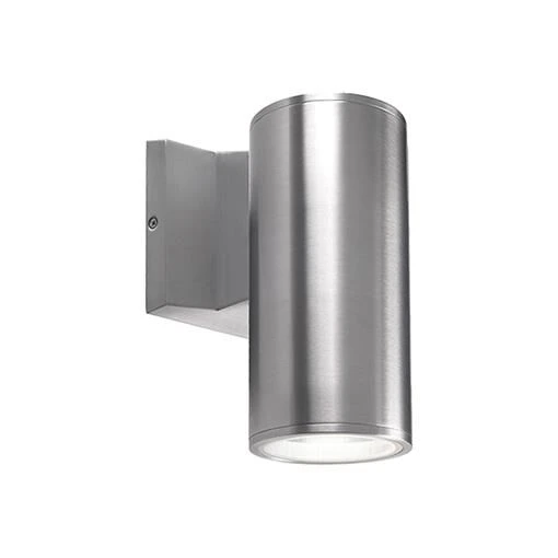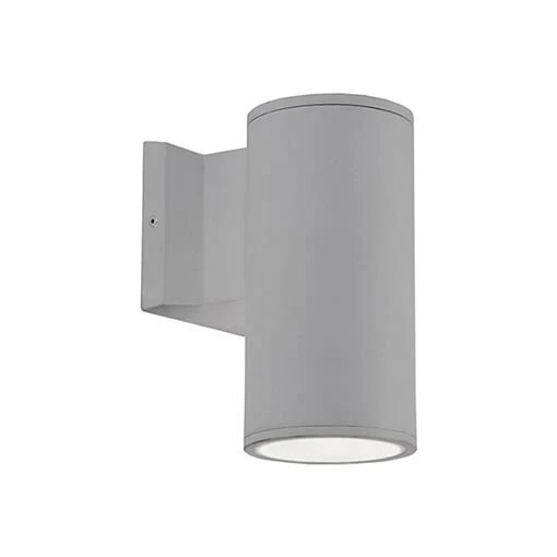High powered LED exterior single light wall mount fixture, die-cast aluminum housing molded into a cylinder shape with in powder coated black, gray and silver finishes. Concealed inside is our 120V AC LED technology with a tempered glass diffuser radiating light either upward or downward depending how it is mounted on the wall, 12W, 3000K with 780* delivered lumens. Certified ETL wet location listed and is available in different sizes and two light options.