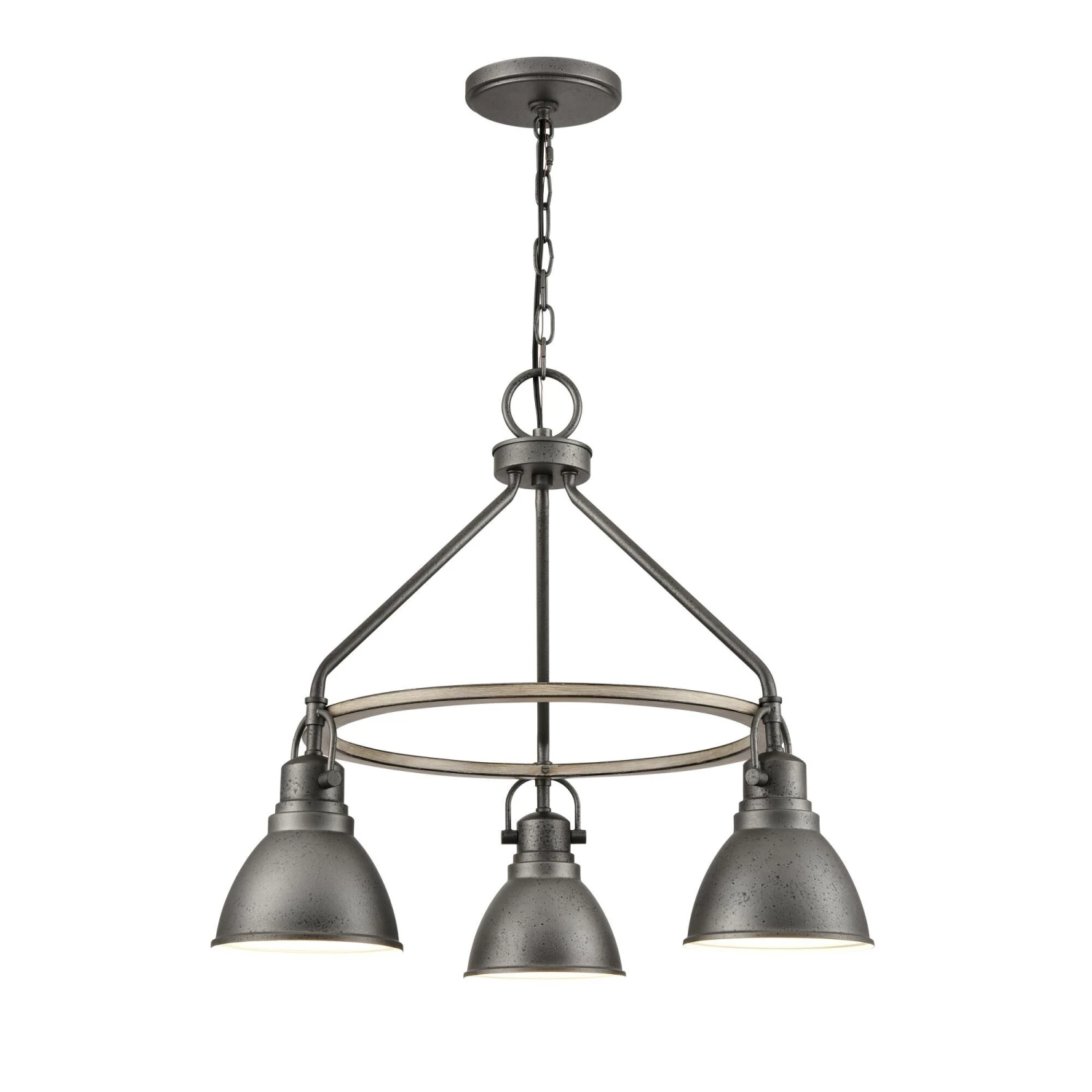 The North Shore outdoor collection features curved metal shades with an industrial influence. Finished in Iron.