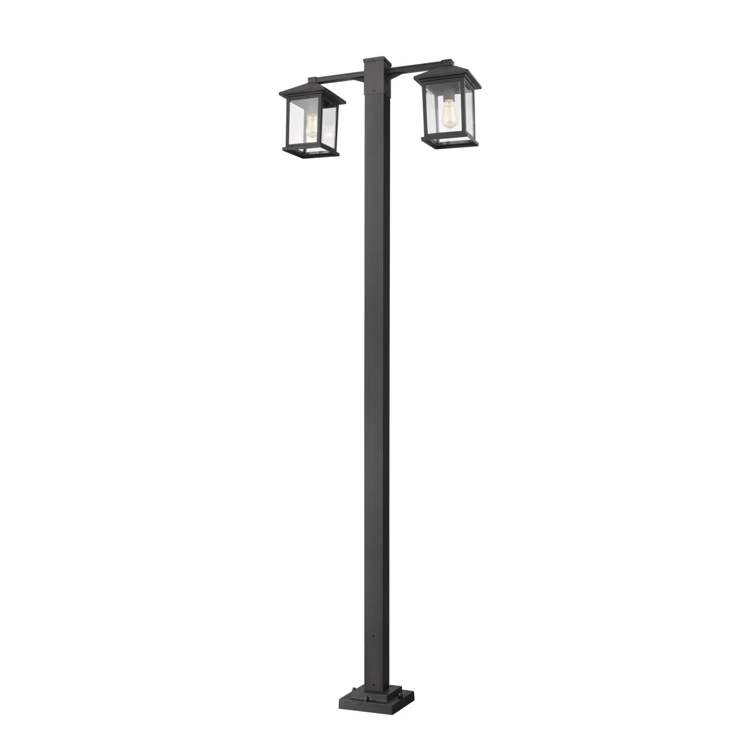 Bring beautiful illumination to a front walk or garden pathway with this two-light tall outdoor post light. In a rich black finish, the lamp delivers two lantern-inspired shades that create a warm and inviting glow.
