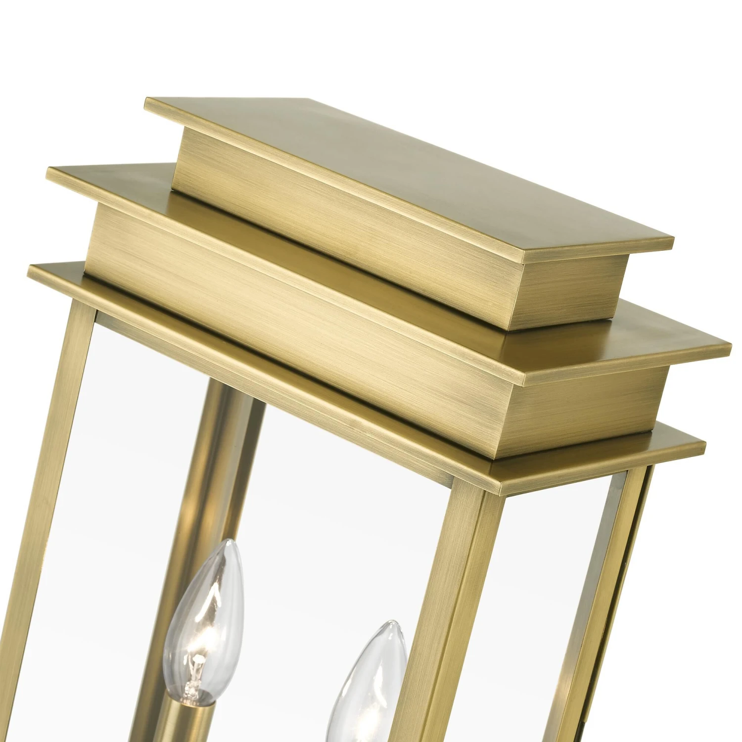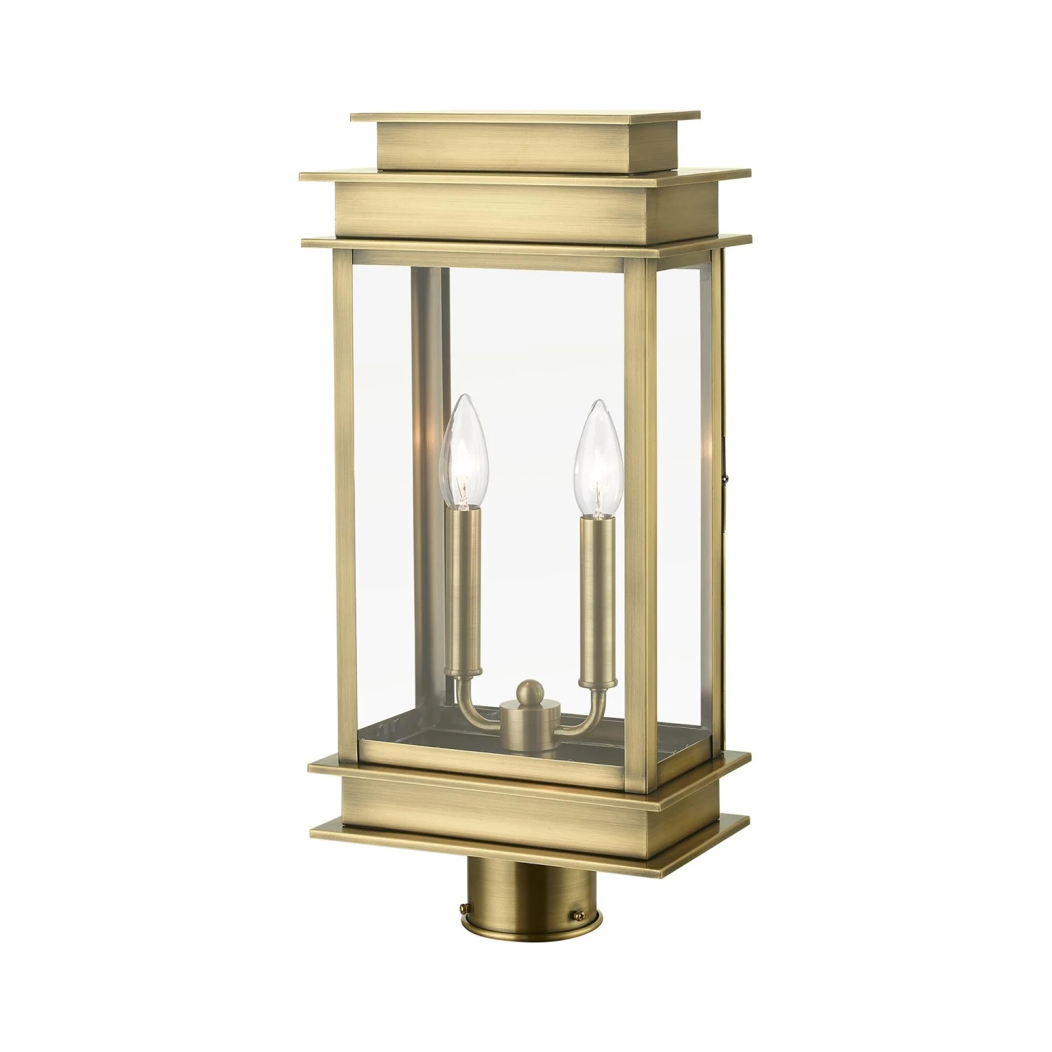 The Princeton collection is a fresh interpretation on the classic English pocket lantern. Hand crafted solid brass, our Princeton fixtures are built for lasting beauty. This outdoor post light features an antique brass finish and clear glass. This old world charm is built to last.
