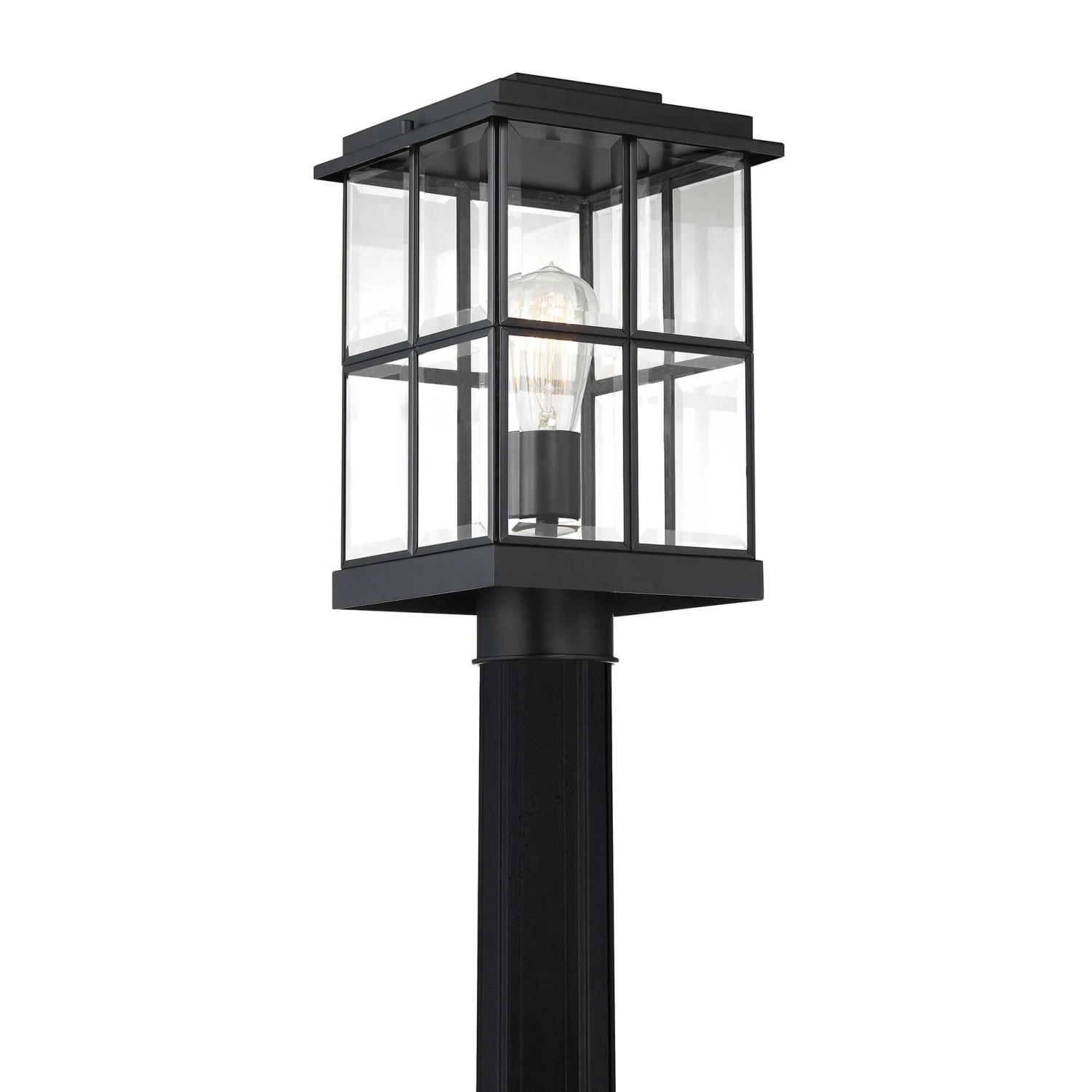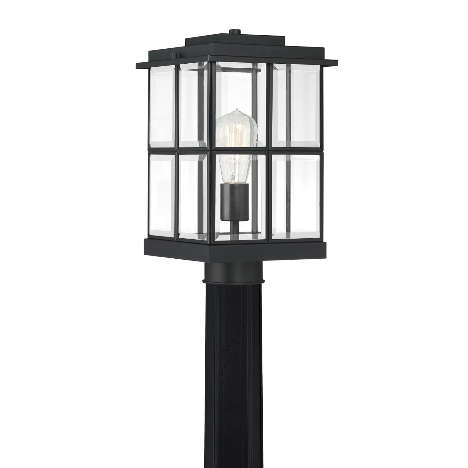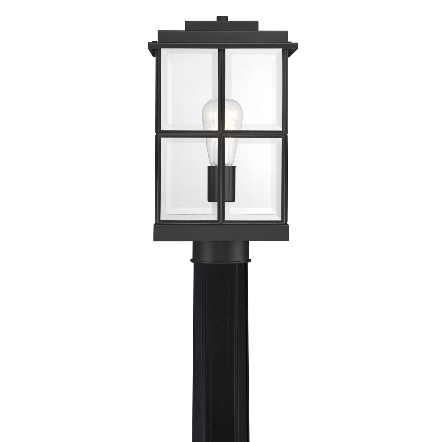 Add instant curb appeal to your home with the Mulligan outdoor collection. The rectangular frame and glass panels create a transitional feel that complements a modern farmhouse or craftsman style home. Finished in matte black with clear beveled glass, this collection is sure to make a great first impression.