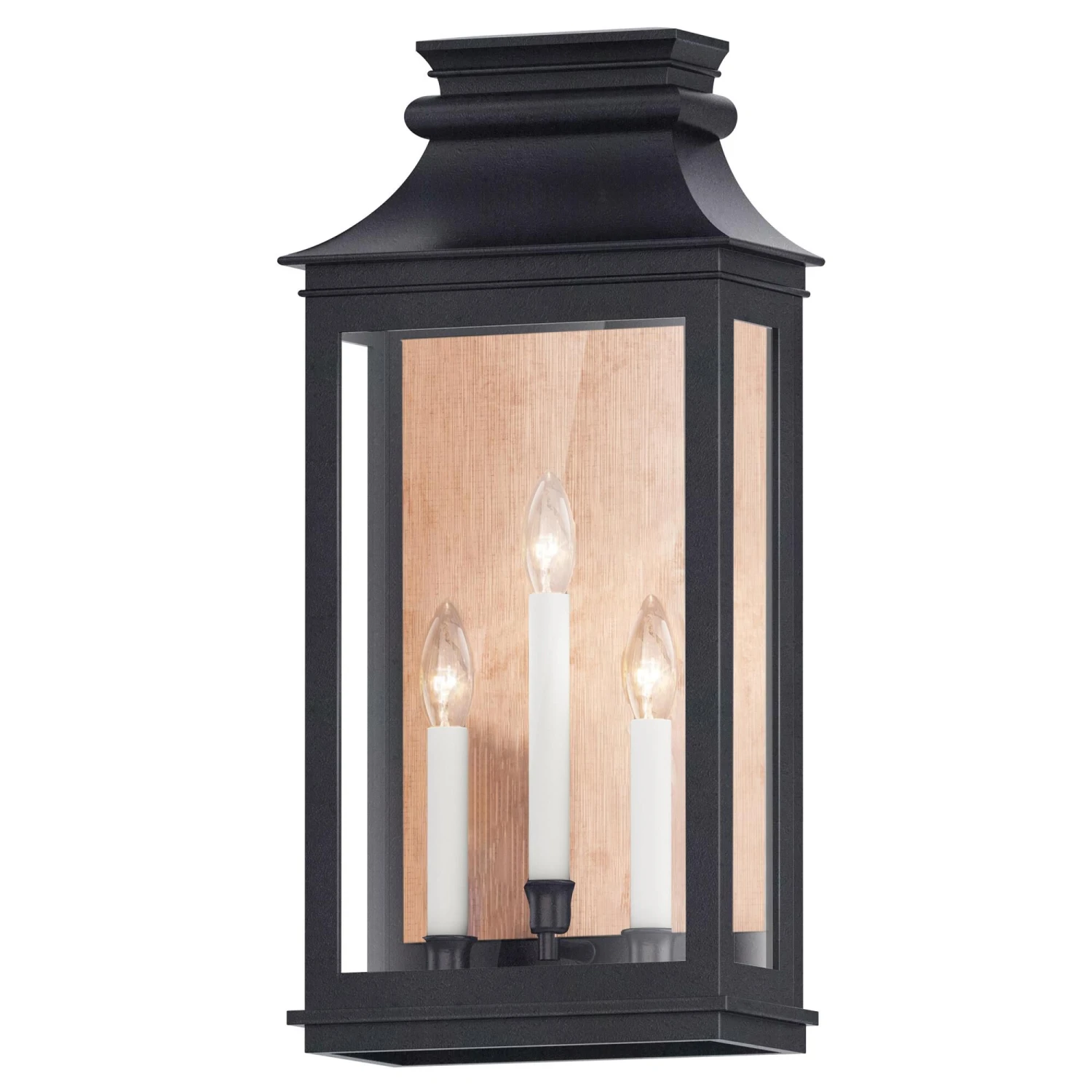 Inspired by classic colonial design, these climate-tough pocket sconces offer traditional charm and stylish finish combinations. Clear glass allows unobstructed light output and visibility into the sconces with candlesticks that stand out in their off-white finish. While the outer frame is made in a textured Black Oxide finish, the interior plate is finished either in a matching finish or contrasting Antique Copper or Verdigris finish. Available as a one, two, or three-light wall sconce, this offering of pocket sconces presents another style of Vivex outdoor products complementing more traditional exteriors.
