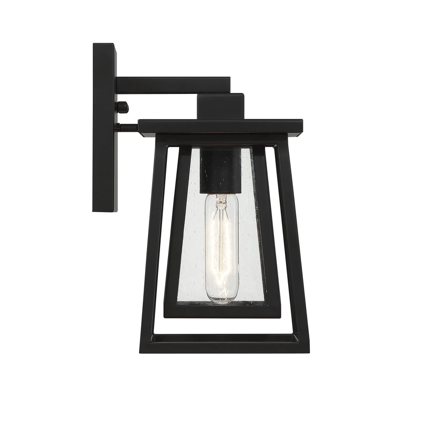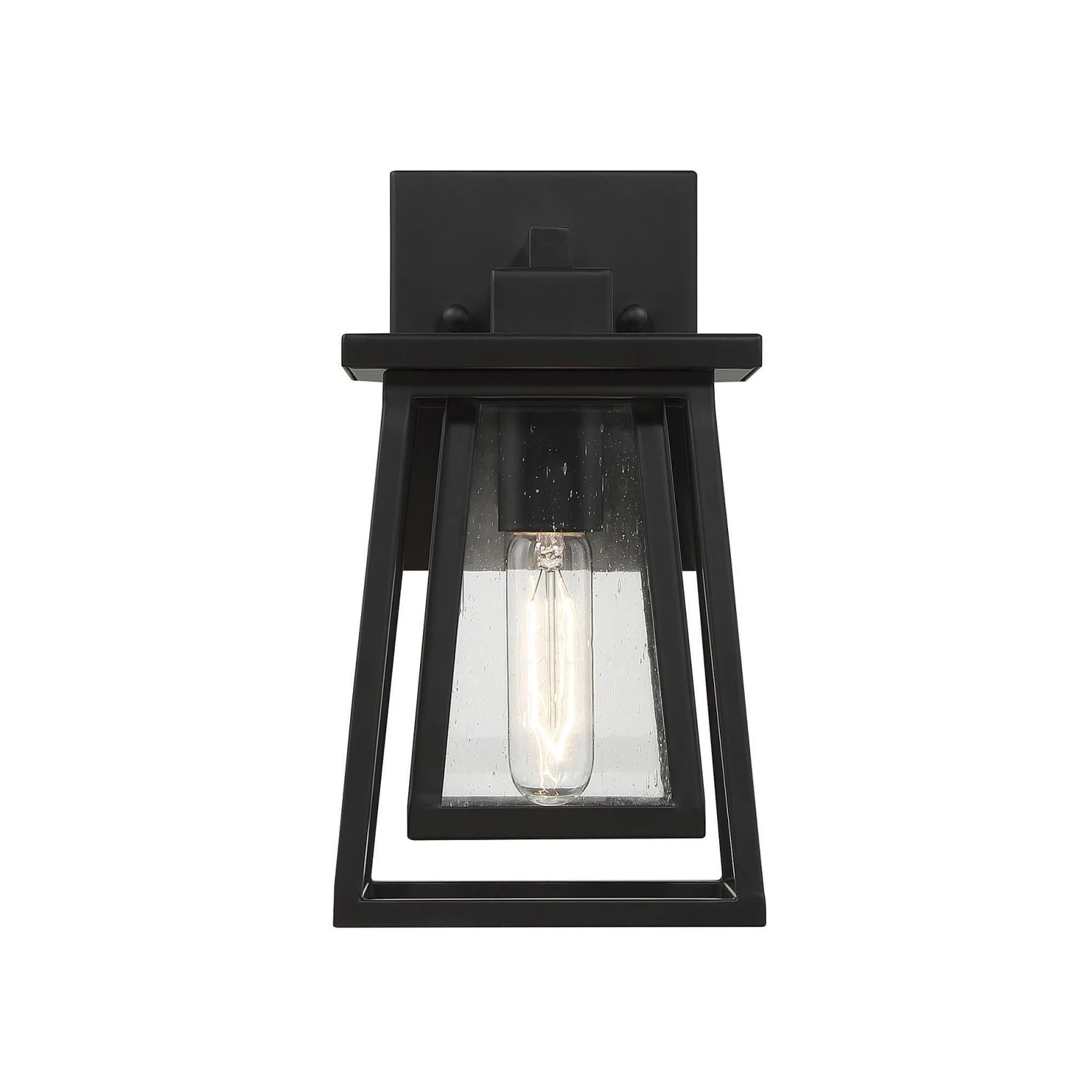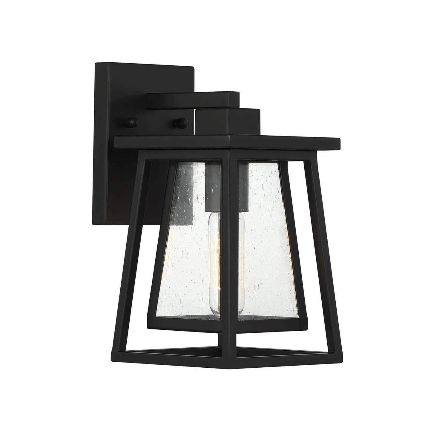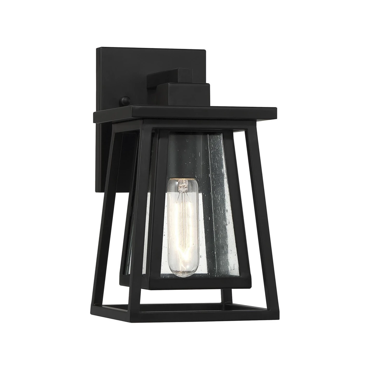 Boost your curb appeal and create a great first impression with the Craftsman-inspired style of the Savoy House Denver 1-light outdoor wall lantern. Clear seedy glass and a matte black finish make Denver a great choice for lighting up today’s fashionable homes. This fixture is 11″ in height, 6″ in width and extends 7.5″ from the wall. It uses one standard size bulb with a max of 60 watts. Wet area rated.