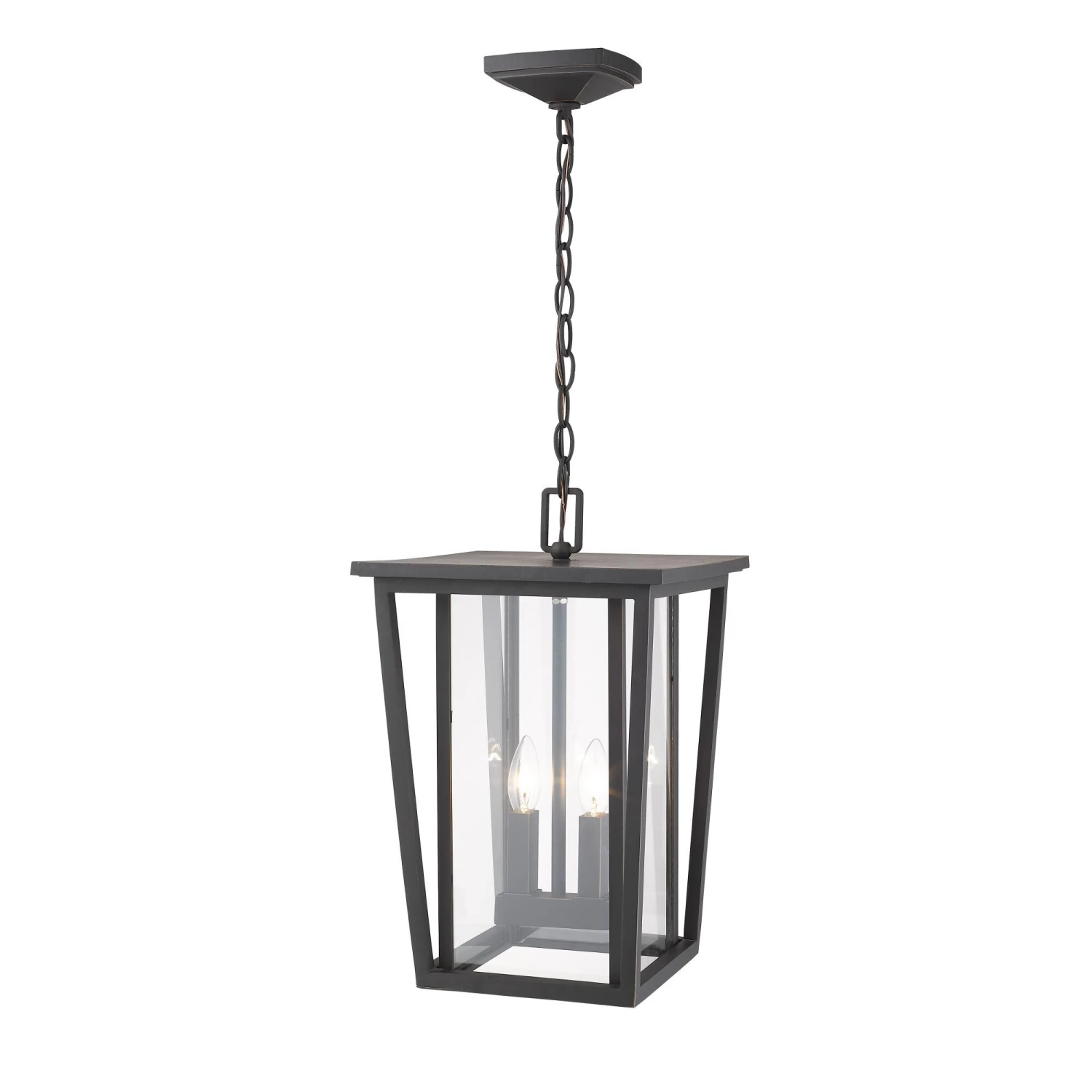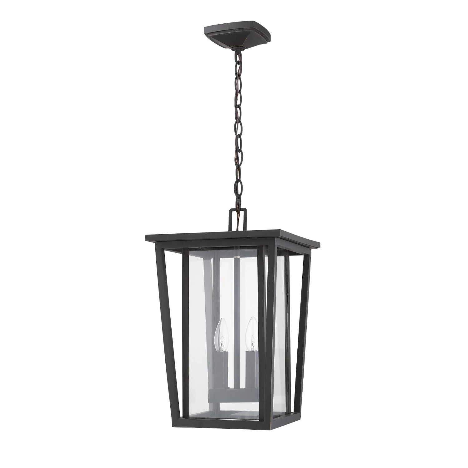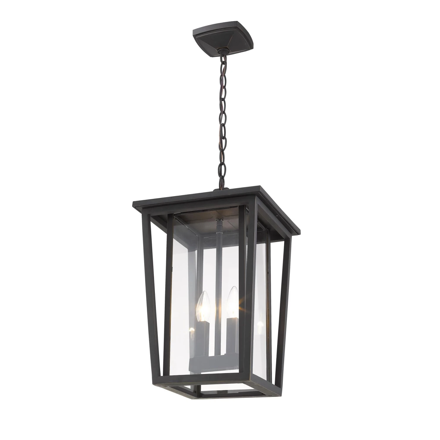 Refresh the look of a gazebo or outdoor patio. This hanging lantern delivers a lush look to an outdoor space with an ornate, intriguing design and a cool rubbed bronze finish frame nestling clear glass.