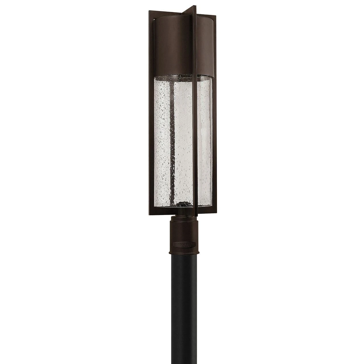 Shelters minimalist style in aluminum creates a chic, dramatic statement as the light from above grazes through its clear seedy glass. Shelter comes standard Dark Sky compliant.