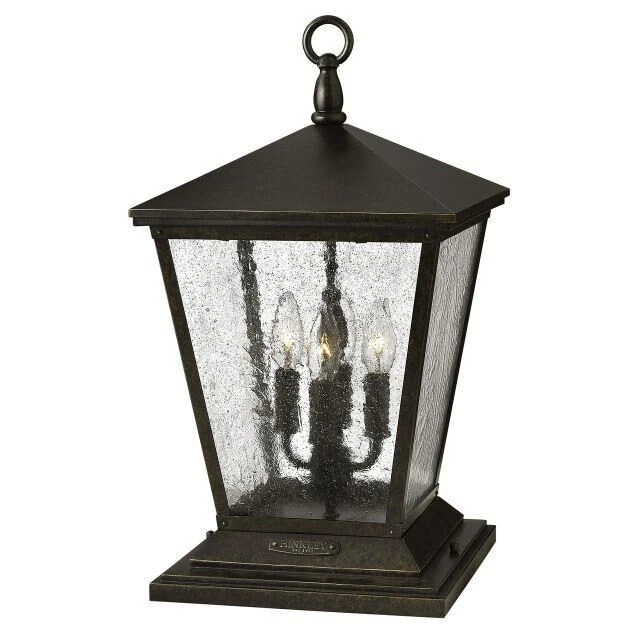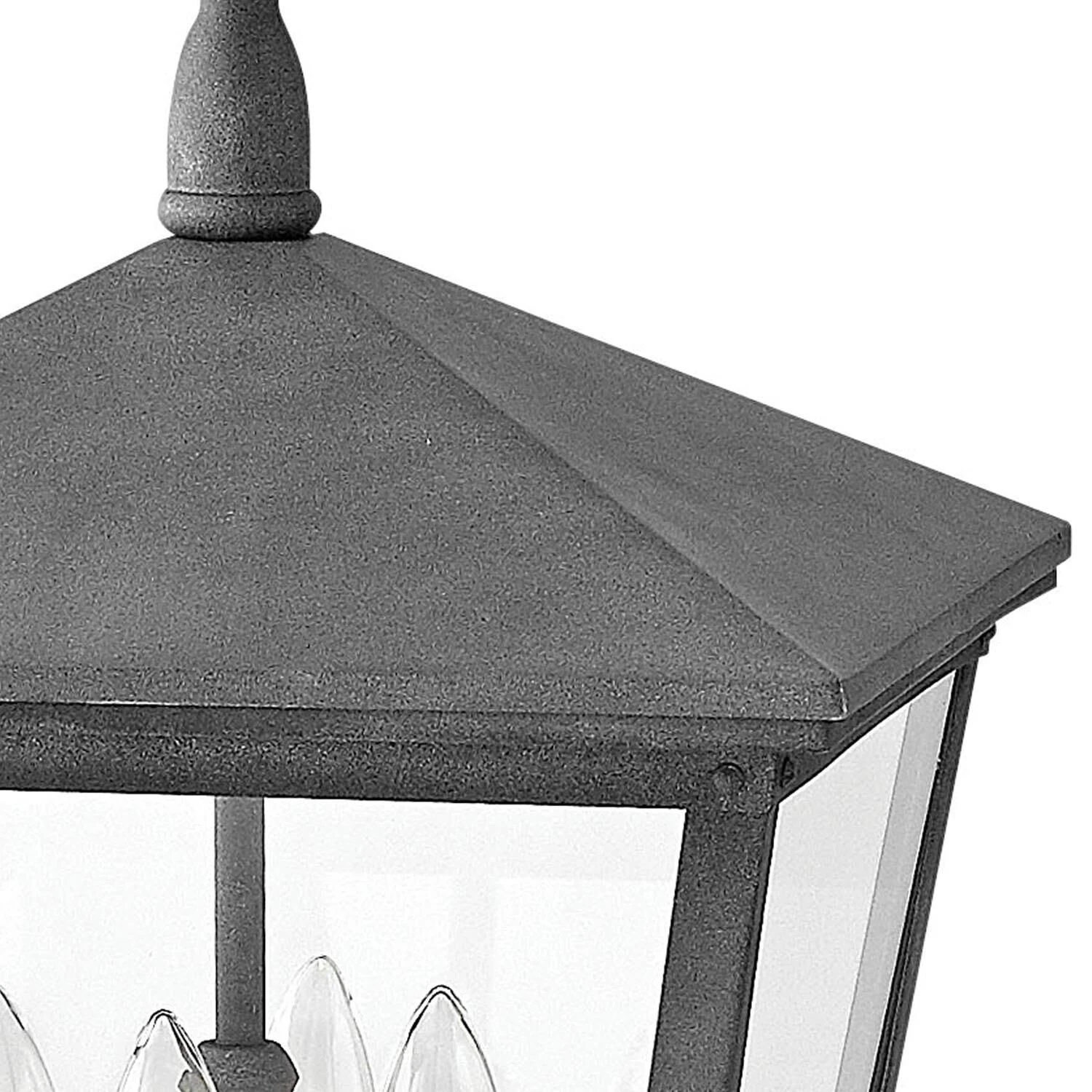 Trellis is a traditional European hanging wall lantern design available in either an Aged Zinc finish with clear glass or a Regency Bronze finish with clear seedy glass. The large scroll arm detail, cast loop finial and true rivet detail create a refined elegance with Old World charm.