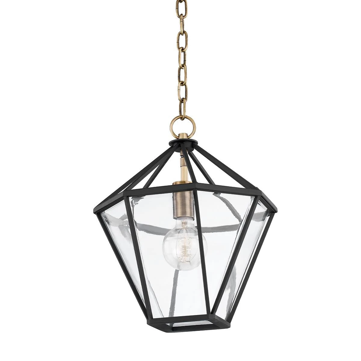 Moss is a fresh take on traditional lanterns. A series of glass panels are held in place by textured black metal to form a unique hex silhouette. Wavy clear glass breaks apart and refracts the light beautifully. A clear bulb in a patina brass socket floats within the frame and fills it with a stunning glow. Whether kept close to the ceiling as a flush mount or hanging lower as a pendant, Moss will add a graceful elegance to any space.