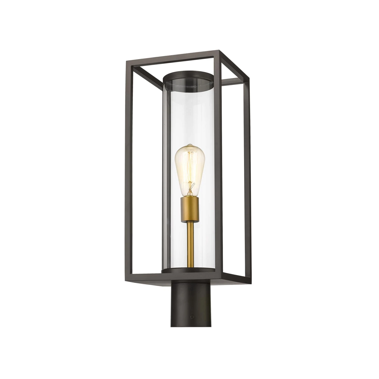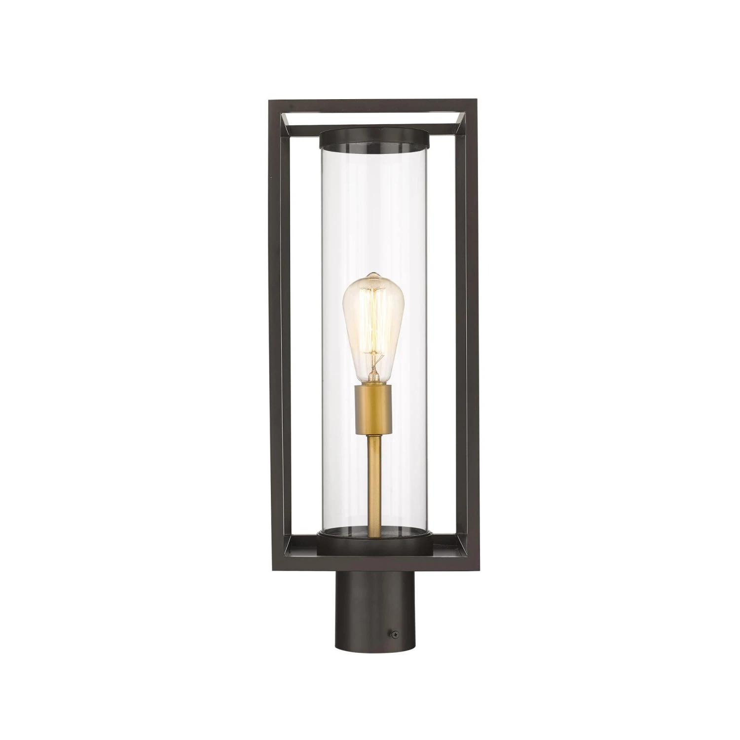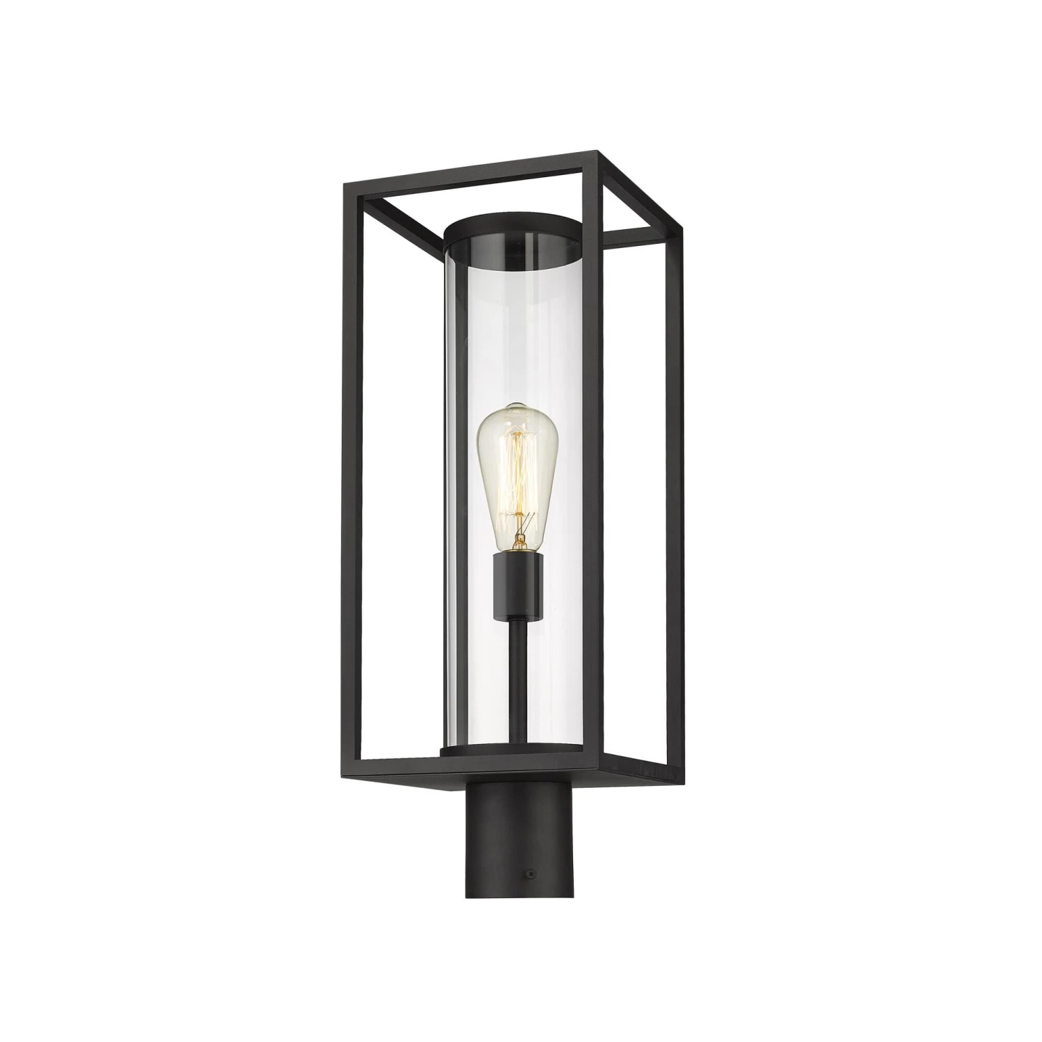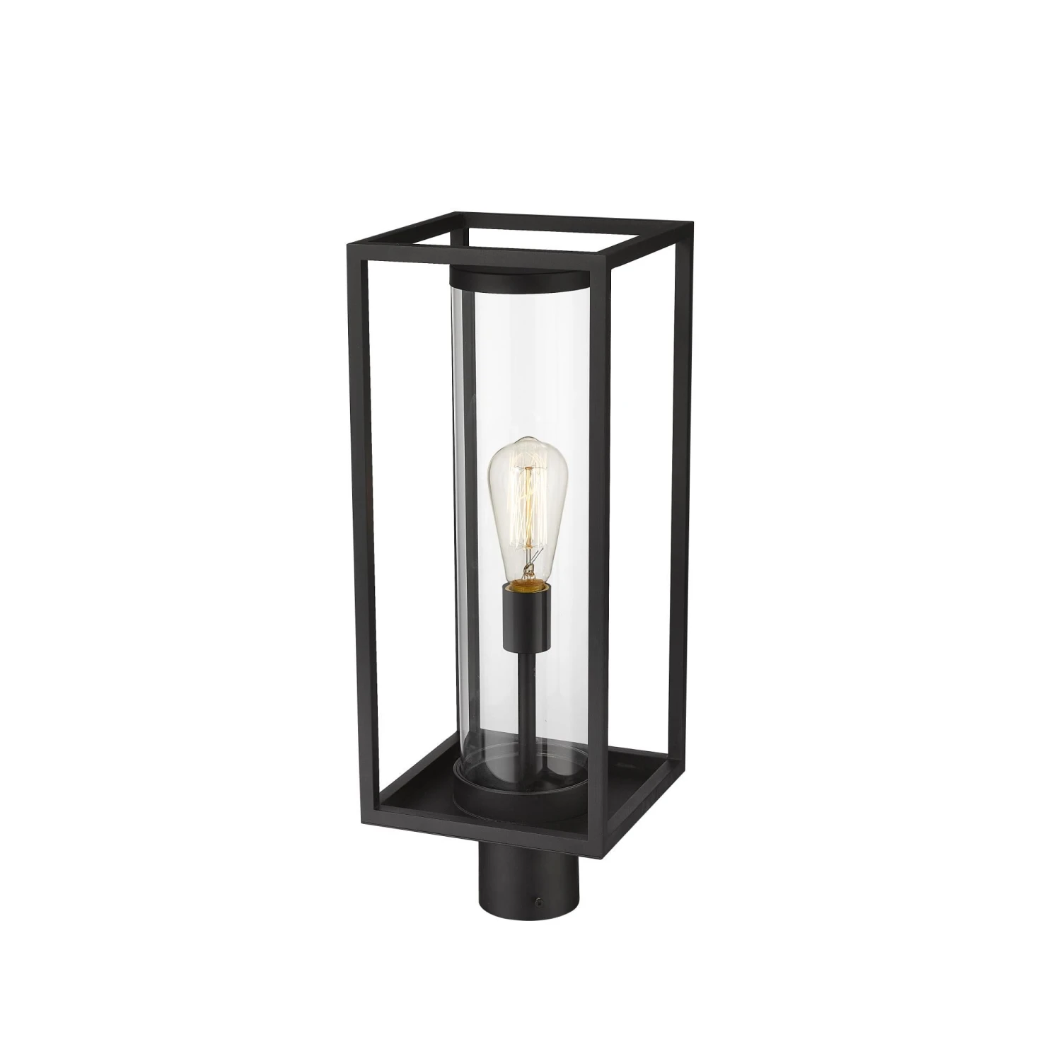 Cast a soothing glow along a dim footpath with this ultra-modern outdoor post mount from the Dunbroch collection. Secure this light fixture to deck railing or corner posts to lend a more contemporary vibe with its open rectangular aluminum lantern, surrounding a single light sheathed inside a tube-like style glass globe. This outdoor light fixture also features a dark black frame finish that complements existing building facade colors and materials.
