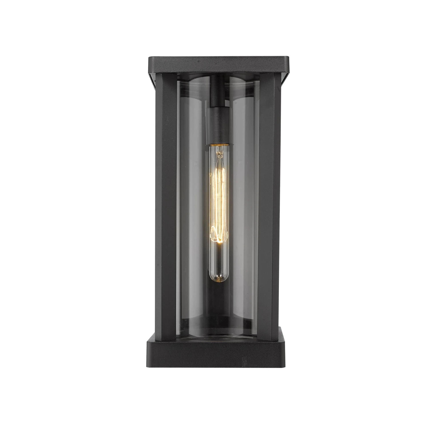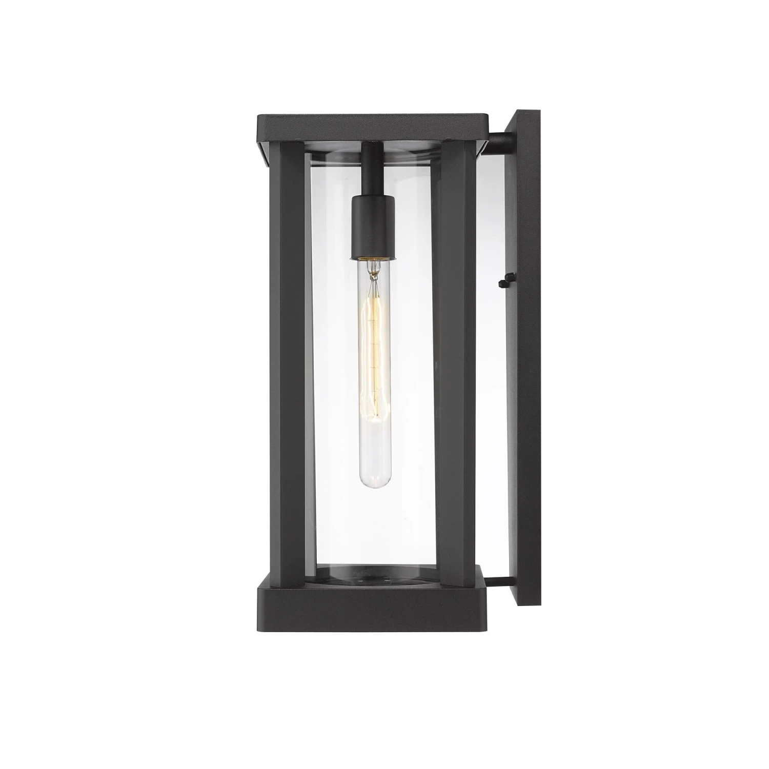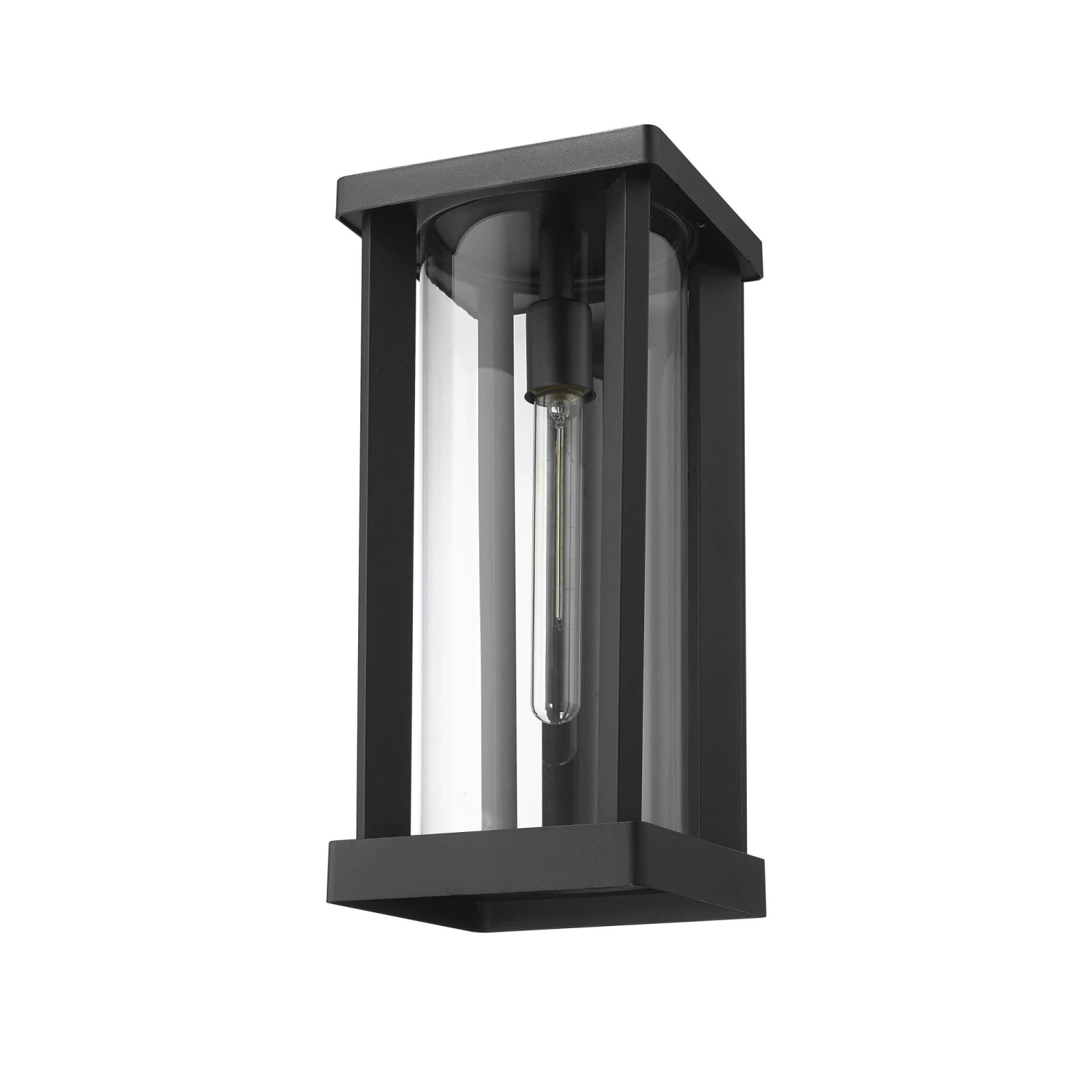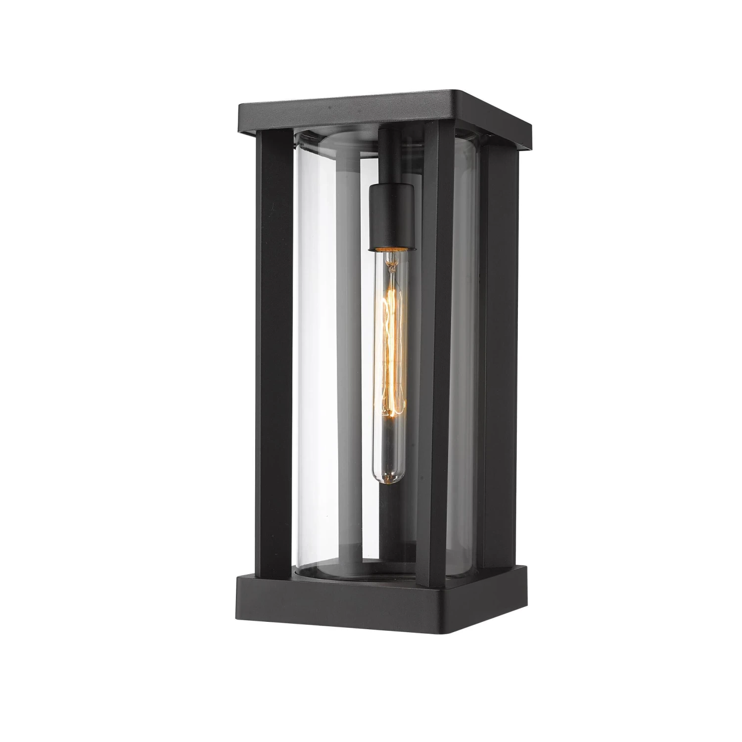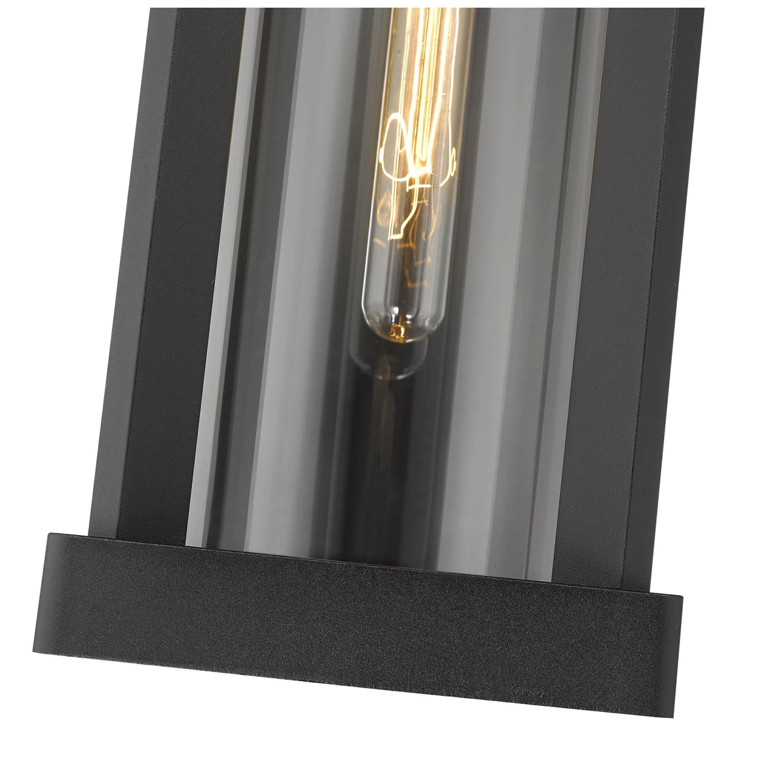 From the Glenwood collection comes this sleek, ultra-modern outdoor wall sconce, featuring a clear glass cylinder globe nestled inside a tall, rectangular aluminum frame. With a dark black finish that looks stylish and attractive against any exterior building materials, this wall sconce lends a striking, sophisticated element to a home’s outdoor entertainment areas. These wall sconces lend a classy, understated vibe hung around a porch patio or veranda, providing sufficient lighting for hosting meals and get-togethers.