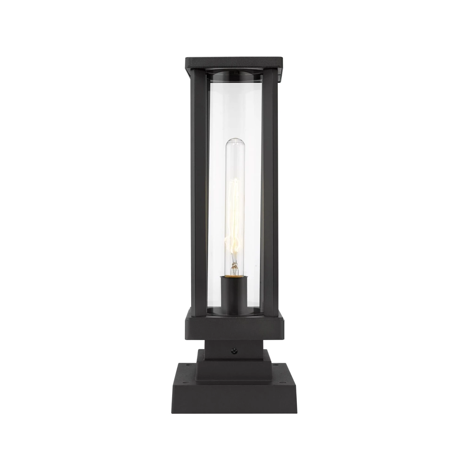 Straight from the elegant and sophisticated Glenwood lighting collection, this contemporary outdoor pier mounted fixture is perfectly suited for driveway columns and architectural elements around a patio space. Encased in a rectangular, ultra-modern aluminum frame with thin corner columns, this lighting piece features a cylindrical clear glass lantern to protect the interior bulb from the elements. In addition, it’s dark black frame and pedestal base allow this mounted lantern fixture to complement your home’s existing landscape design and facade.