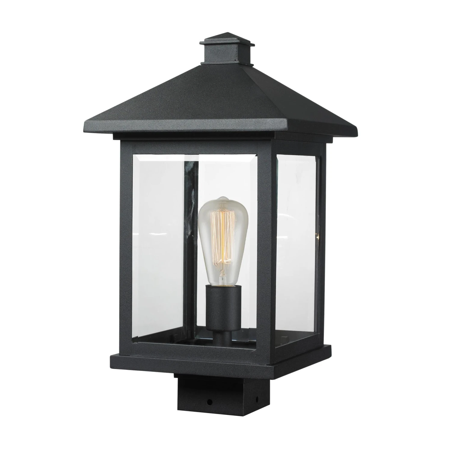 The timeless, mission styling of the Portland family displays clean lines to suit both contemporary and traditional decors. Clear beveled glass paired with black comprised of cast aluminum which withstands natures seasonal elements.