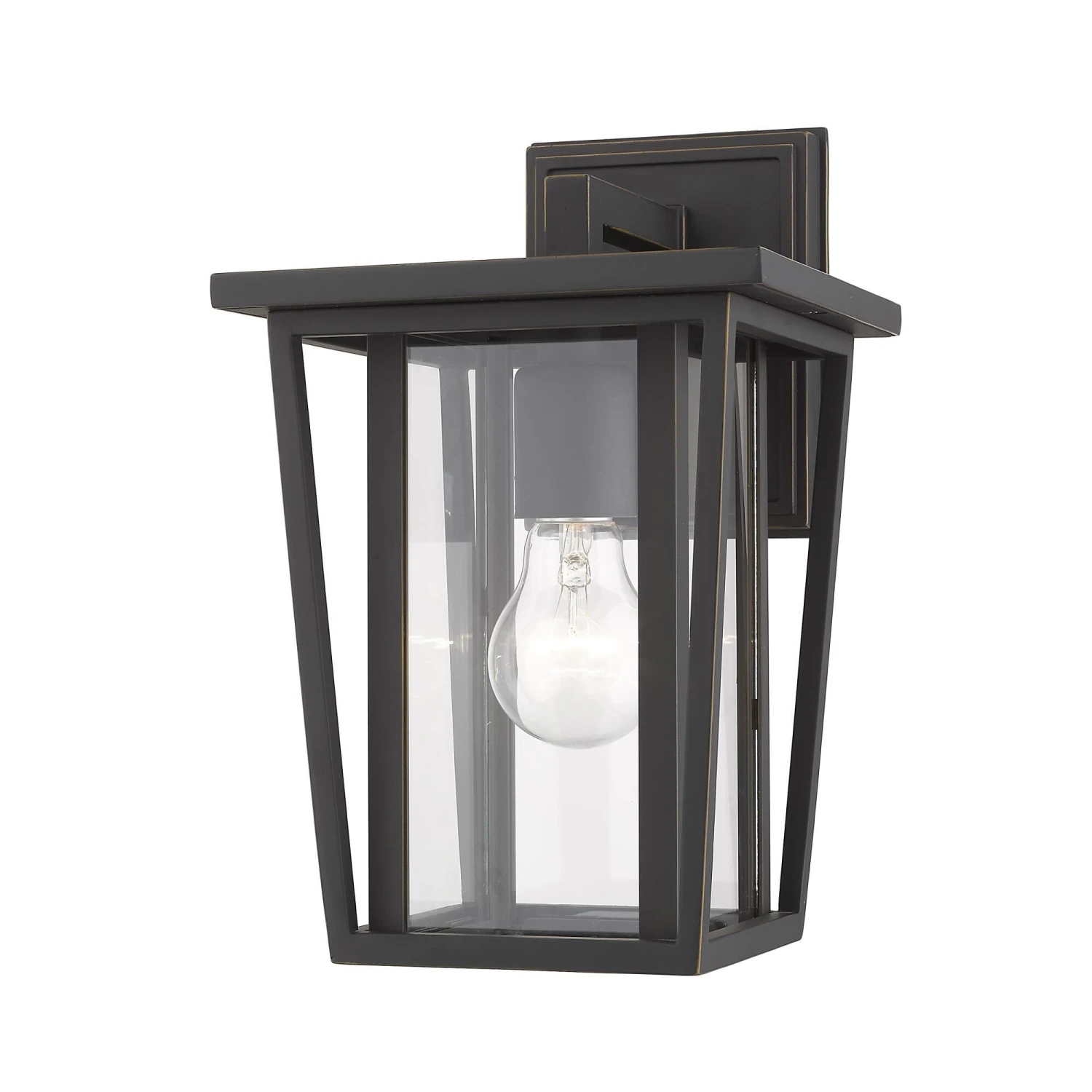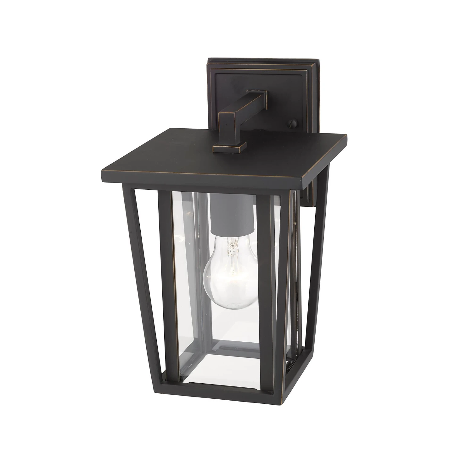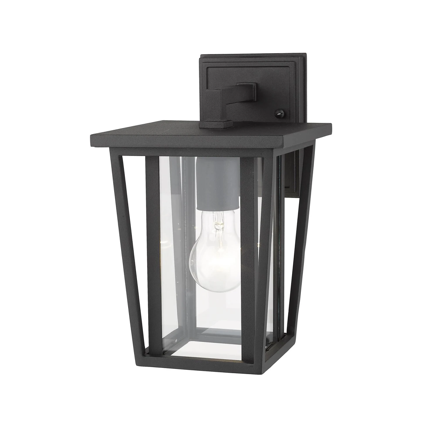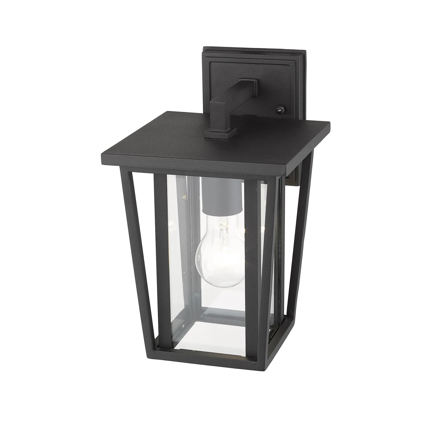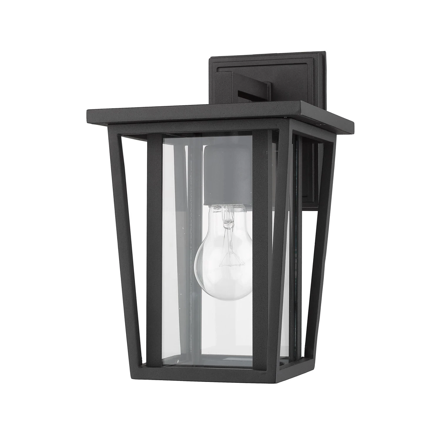 On a structure or gazebo space, this outdoor wall lantern creates an eye-catching geometric attitude. Cool linear design on its black finish frame blends beautifully with an interior bulb hosted in a clear glass shade.