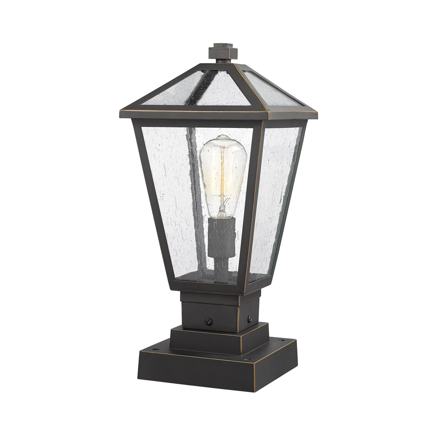 Illuminate an exterior front or back walkway with a classic fixture reflecting a charming village theme. Made from Midnight Black metal and clear beveled glass panels, this one-light outdoor pier mounted fixture delivers a charming upgrade with industrial-inspired attitude and a layered silhouette that’s perfect for lower-level gardens and walkways.
